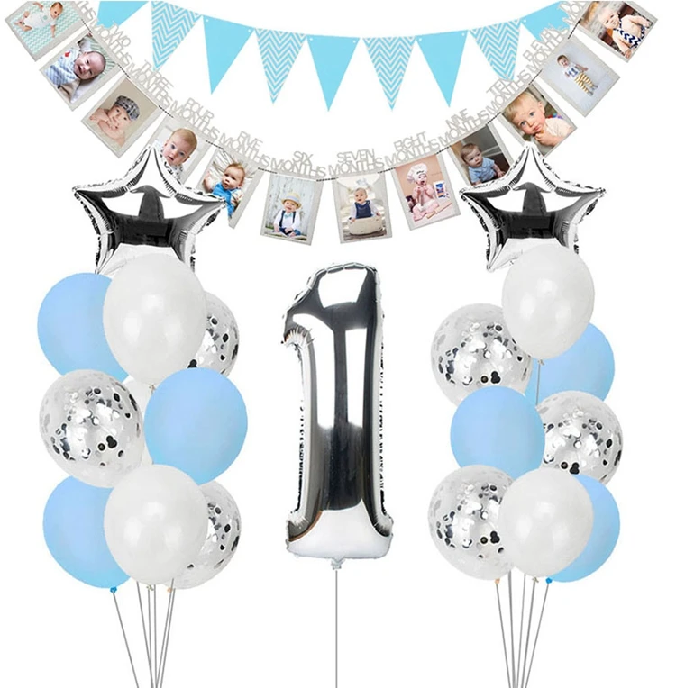 1-й День рождения украшения для баннеров Серебряная синяя звезда фольги шар первый день рождения для мальчиков и девочек вечерние мой 1 год декор для детей и взрослых