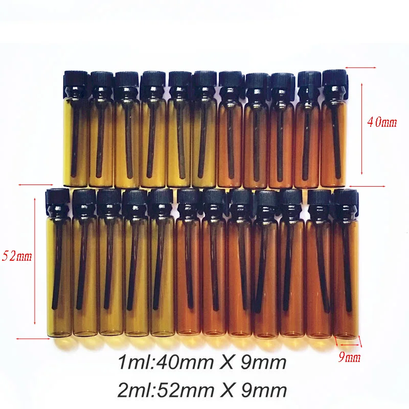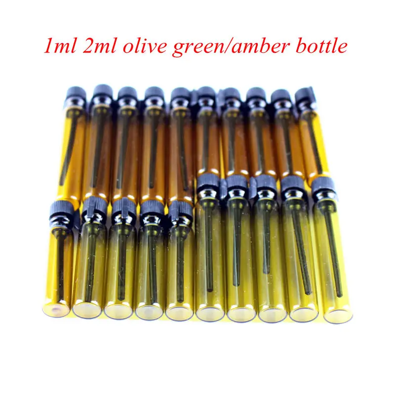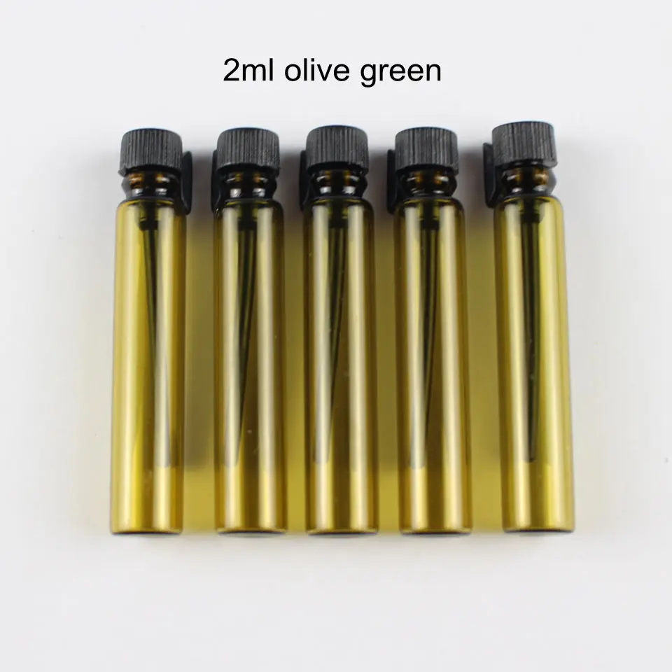 100 шт.лот 1 мл 2 мл оливковыйЯнтарный стеклянный флакон для духов для эфирных масел пустая Косметическая пробная Тонкая Стеклянная Бутылка