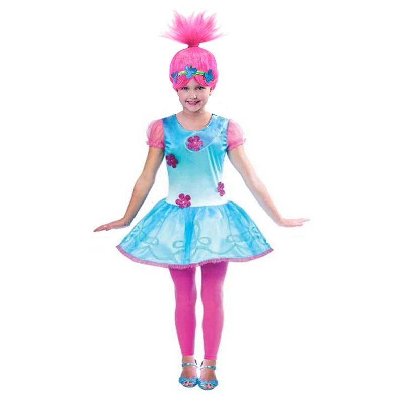2019 парик для троллей для девочек + платья комплект Детский костюм для девочек; Карнавальные Детские костюмы Моана платье с маковым принтом и рисунками троллей костюм вечерние одежда