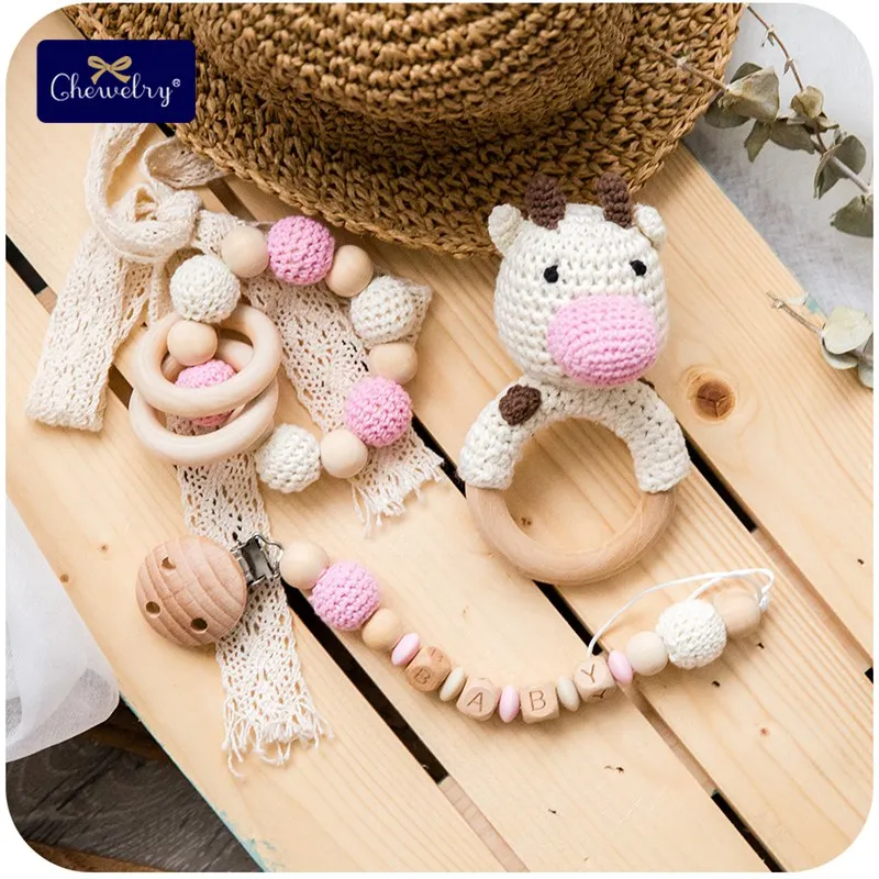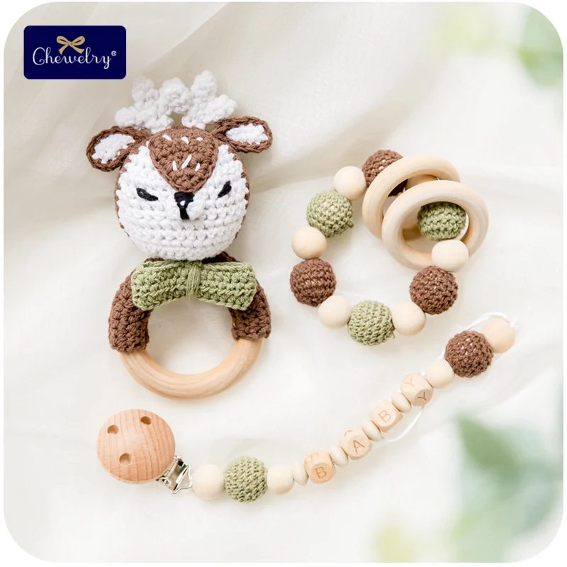 Деревянный Прорезыватель для зубов для детской кроватки, детская игрушка-погремушка, зажим для пустышки, цепочка для детской коляски, игрушки, 1 комплект3 шт.