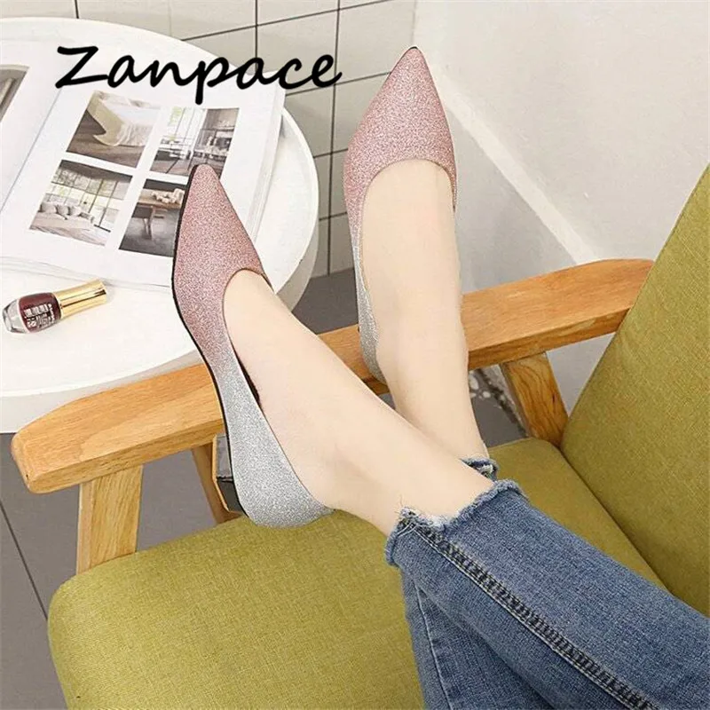 Туфли ZANPACE женские на платформе, заостренный носок, низкий каблук, свадебная обувь, без каблука, топ-сайдеры, весна-осень