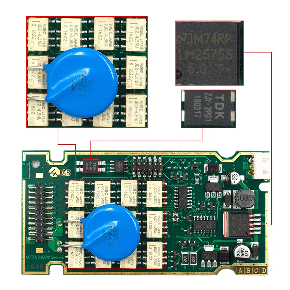 3.Полные чипы Lexia3 с золотым краем + 921815C + 12 шт Япония NEC Реле + 7 шт оптопары:(Нет зажимного кабеля без короткого usb-кабеля):