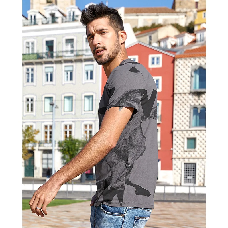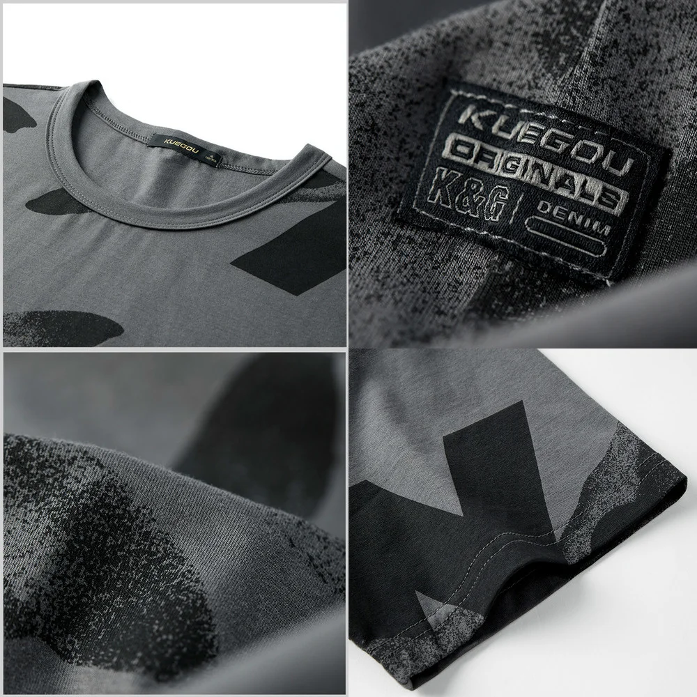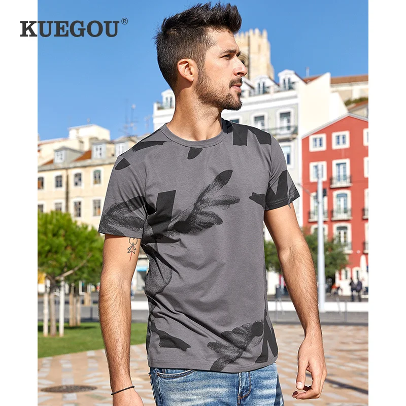 KUEGOU 2022 летняя футболка из 100% хлопка с принтом, Мужская футболка, брендовая футболка с коротким рукавом, Мужская модная одежда больших размеров 380