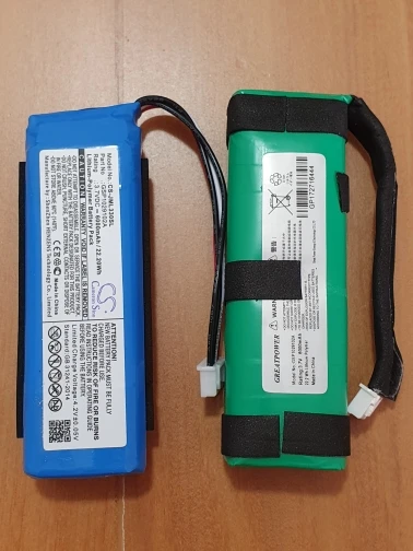 Характеристики аккумулятора такие же, как у моего JBL charge 2 +, но разъем отличается. Я должен был сварить старую батарею. Общение с продавцом плохое. Я отправил вам фотографии моей батареи и разъема перед размещением заказа, но он также отправил батарею с другим разъемом.