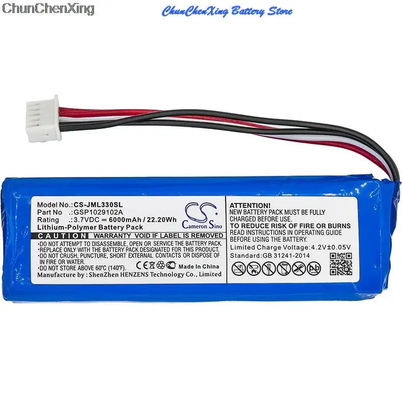 Аккумулятор Cameron Sino 6000 мАч GSP1029102A(CS-JML330SL) для JBL Charge 3, пожалуйста, дважды проверьте место 2 красных и 2 черных провода