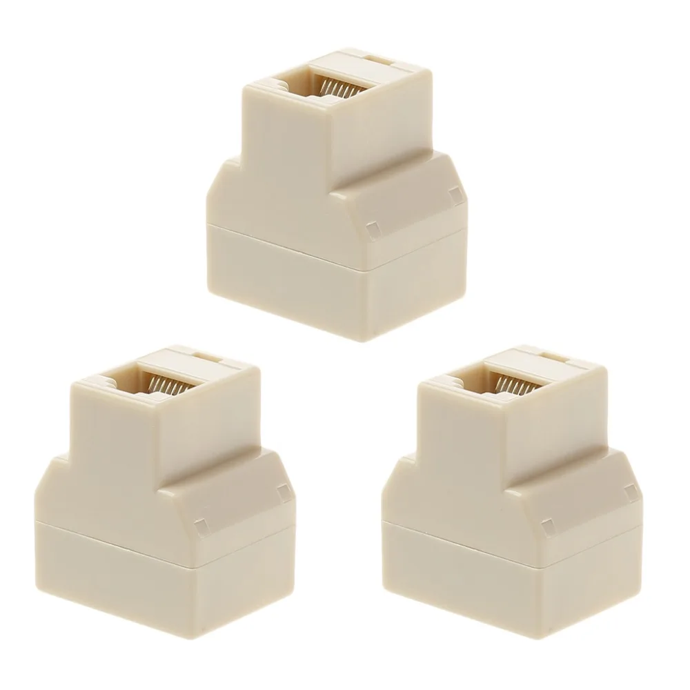 3Pcsset 1 To 2 Way LAN Ethernet Network Cable RJ45 Female Splitter Connector Adapter for Computer White High Quality