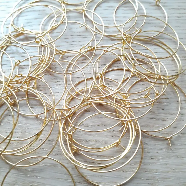 Проволочные серьги-обручи, золотые, 20-50 шт.лот, 20, 25, 30, 35 мм, KC, для изготовления ювелирных изделий