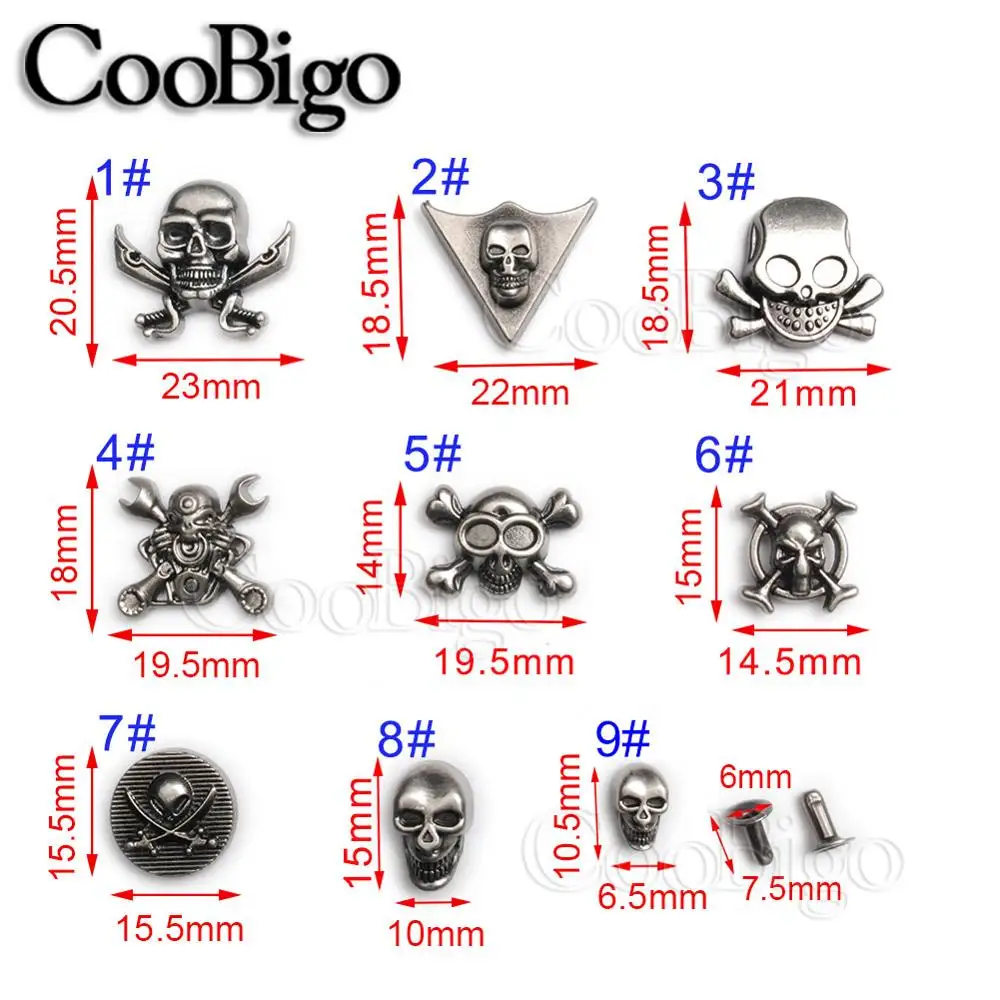 Заклепки с пиратским черепом, шипы для кожаной одежды, ювелирные изделия от кутюр, сделай сам, ремесло, украшение, Швейные аксессуары, металл, ретро, 10 комплектов