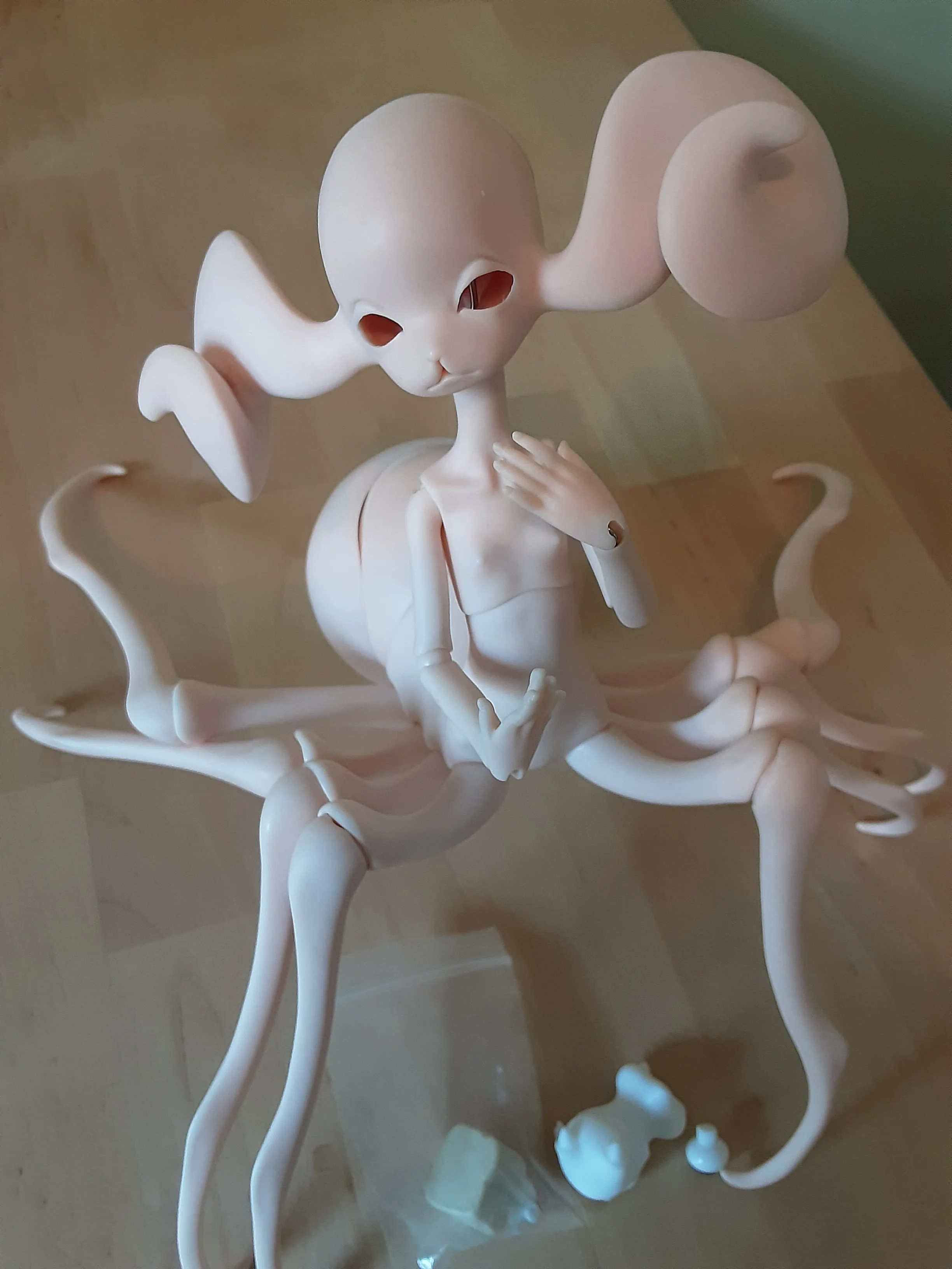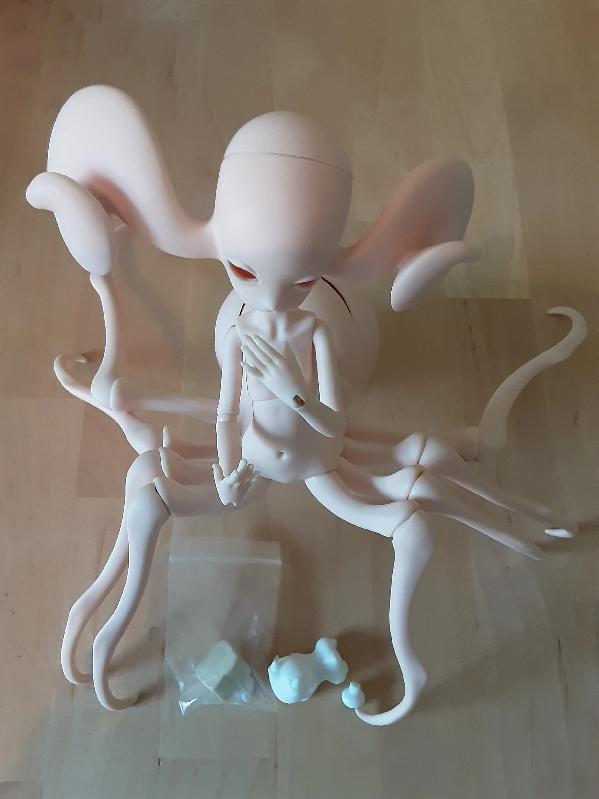 Sie ist sehr schnell angekommen, habe es gar nicht erwartet! Sie ist sehr niedlich, vor allem die kleinen Hände! Alles in einem gut gemacht, das Resin ist wunderbar gleichmäßig und hat eine schöne Farbe. Keine Risse oder Chips zu sehen. Einen einzigen Fehler habe ich gefunden, am Hinterteil ist die Abdeckung zu klein gewesen und wurde schief eingeklebt. Aber zu diesem Preis, sag ich immer noch 5 Sterne. Augen hab ich bekommen, die ich mir gewünscht habe und einen kleinen Drachen als Geschenk. Vielen Dank, ich bin mit meinem Kauf zufrieden und werde gerne wieder bei Ihnen kaufen ;)