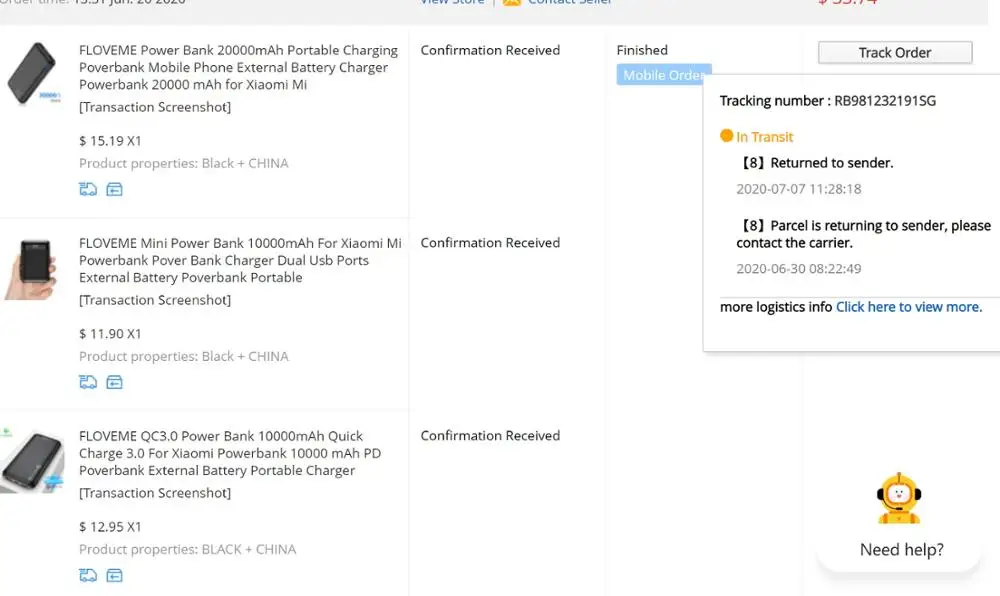 С июня этого года я заказал этот внешний аккумулятор в дополнение к другим 2 типам от этого продавца, но не получил его, потому что они были возвращены продавцу (см. Фото) И за все это время я отправил много сообщений продавцу, и он продолжает обещать, пока заказ не завершился во время путешествия, и я не мог открыть спор, поэтому я потерял деньги и продавец не хотите даже вернуть мои деньги, как обещано. Не доверяйте им