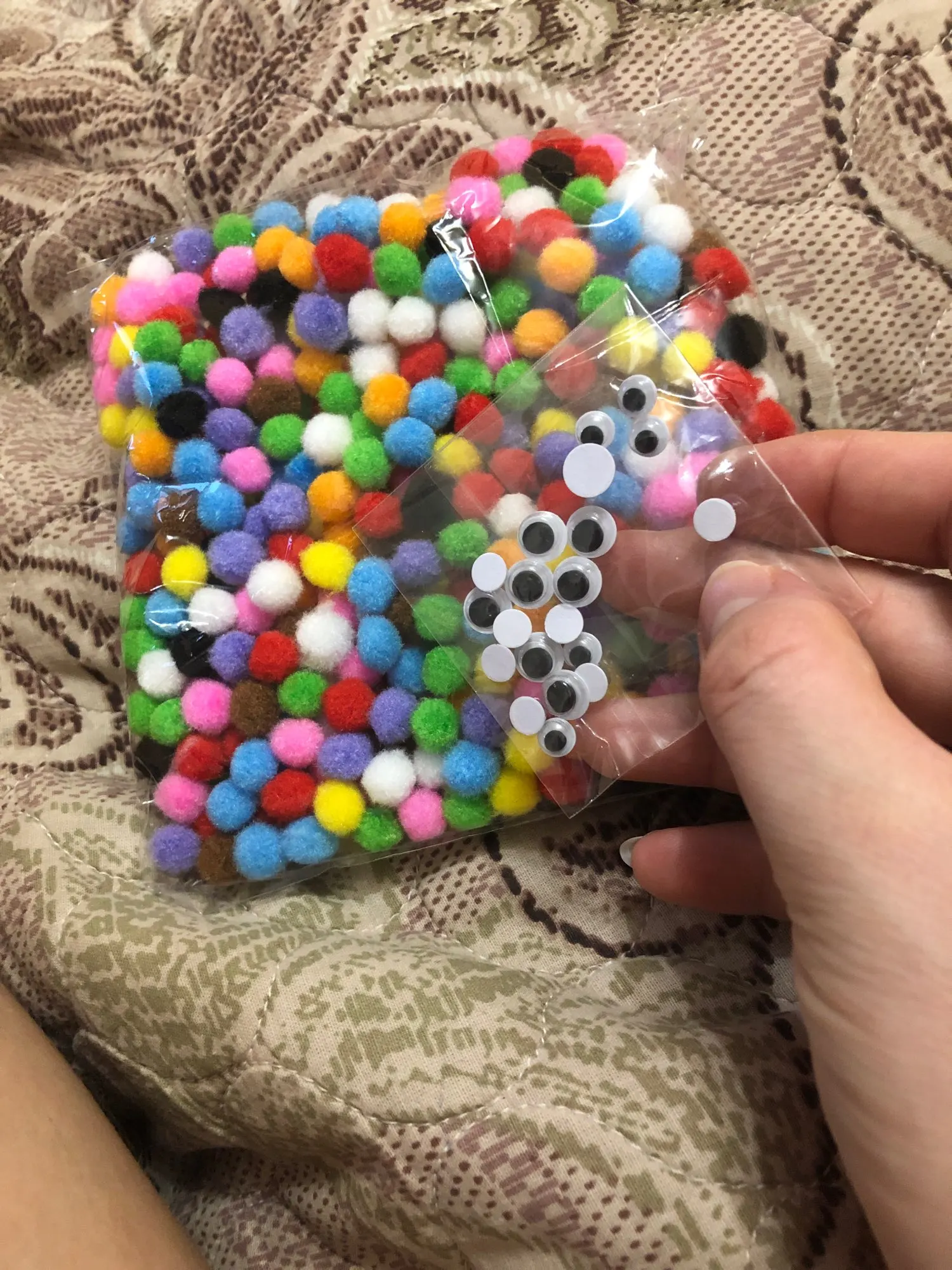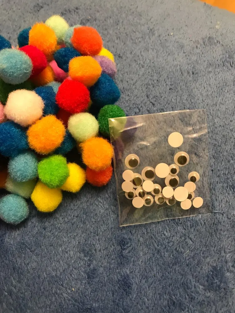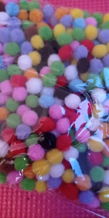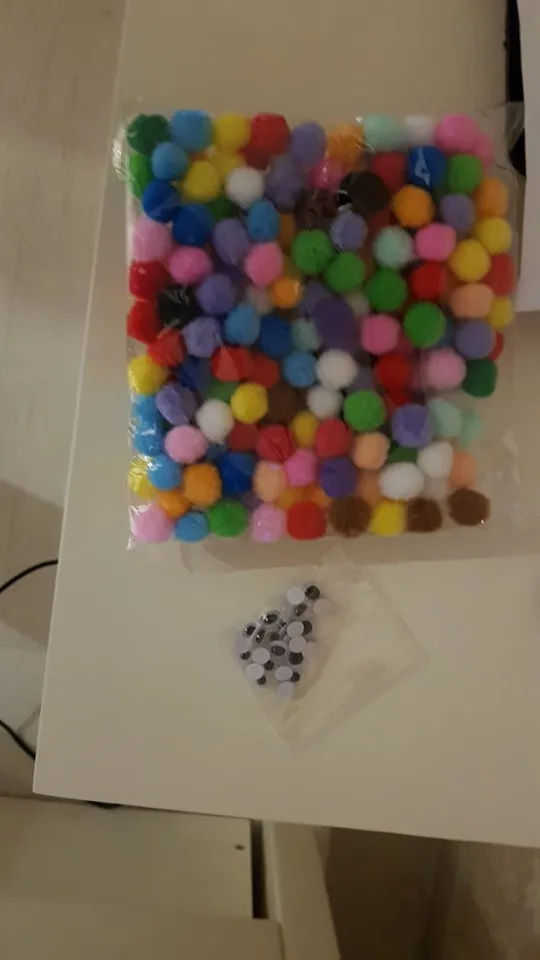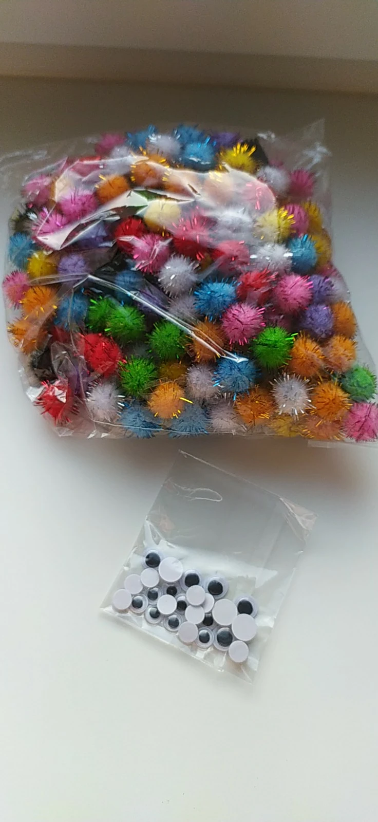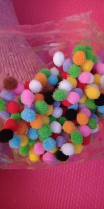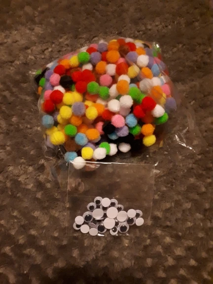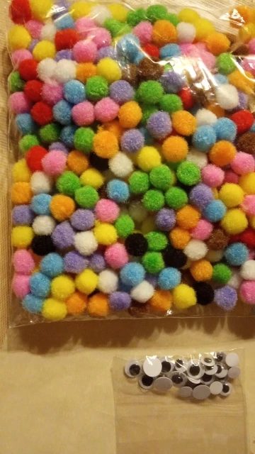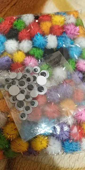 Помпоны отличные. Не считала, но их очень много. + продавец положил подарок - глазки.