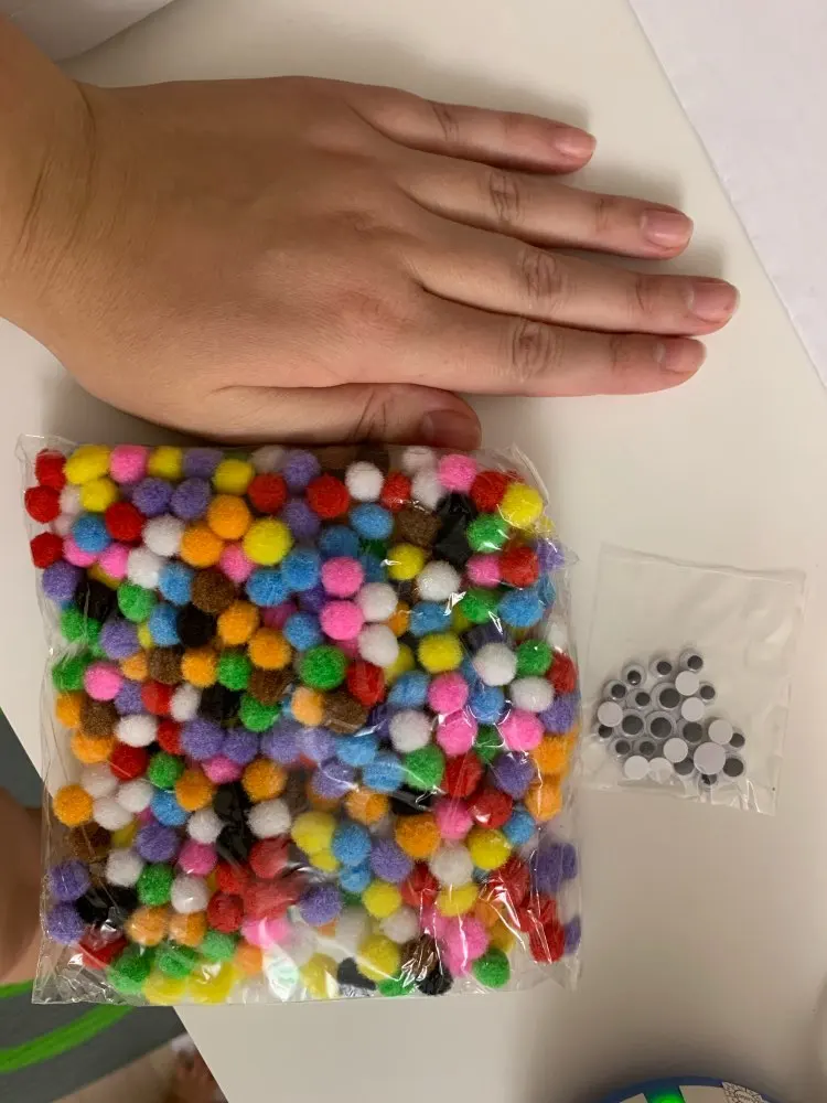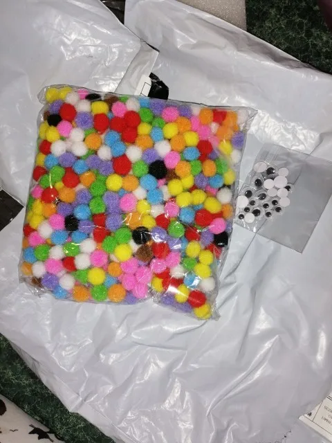 Посылку заказывали на 11.11 пришла только 11.01.21, смотрите описание, т.к. помпоны немного меньше 1см, но продавец положил глазки) спасибо за приятности)