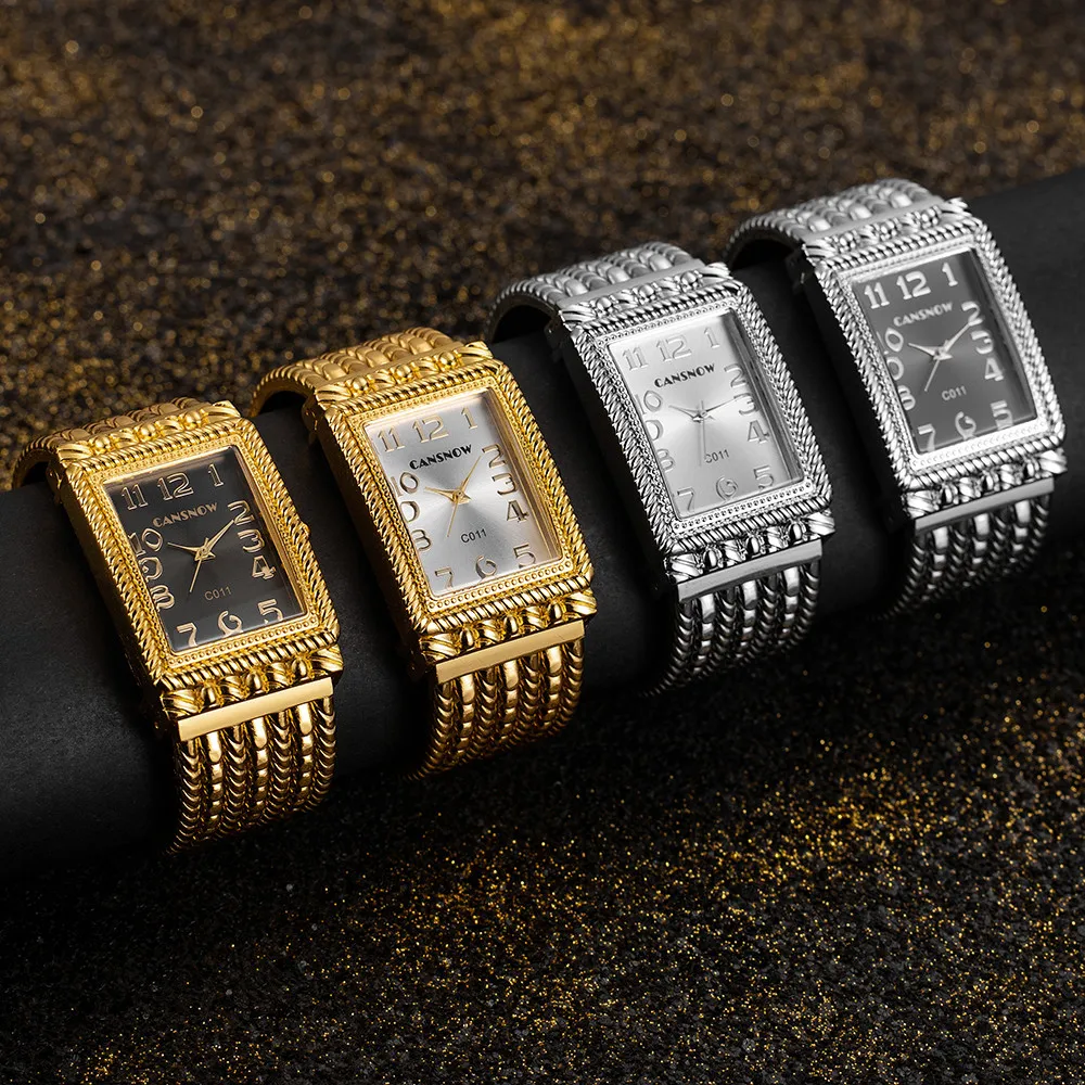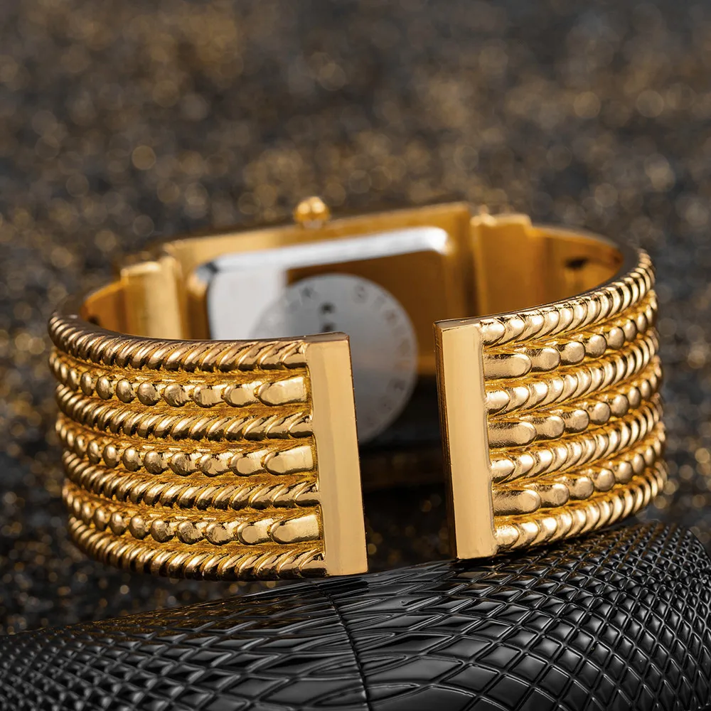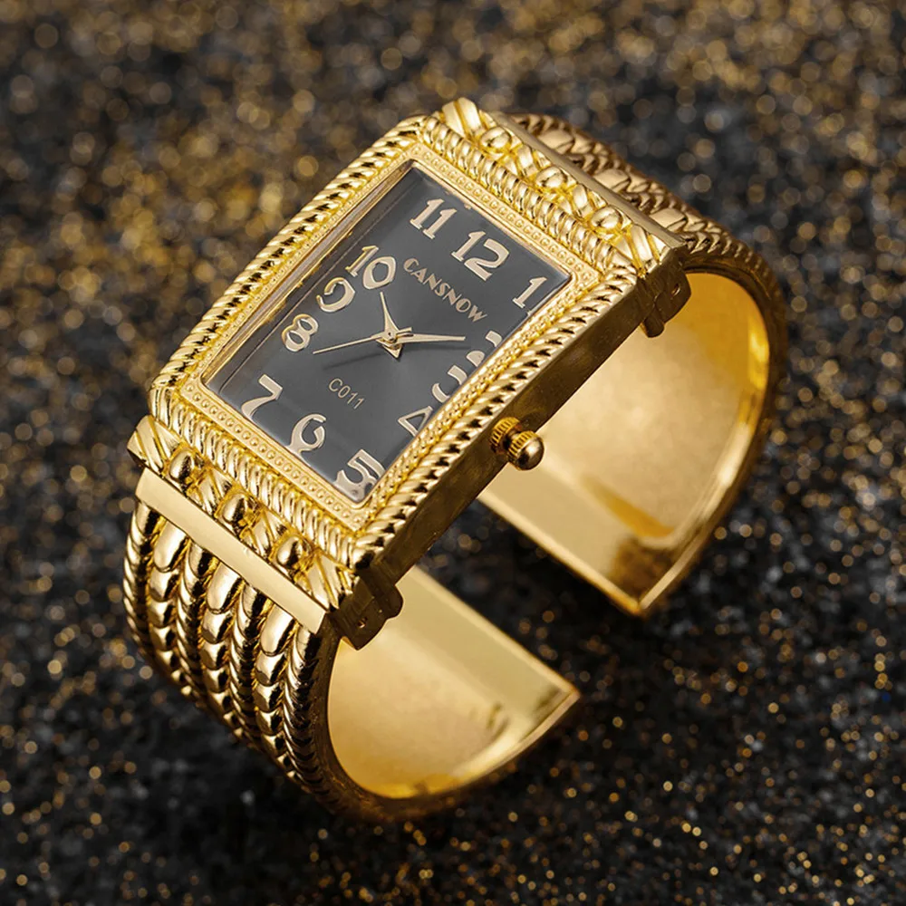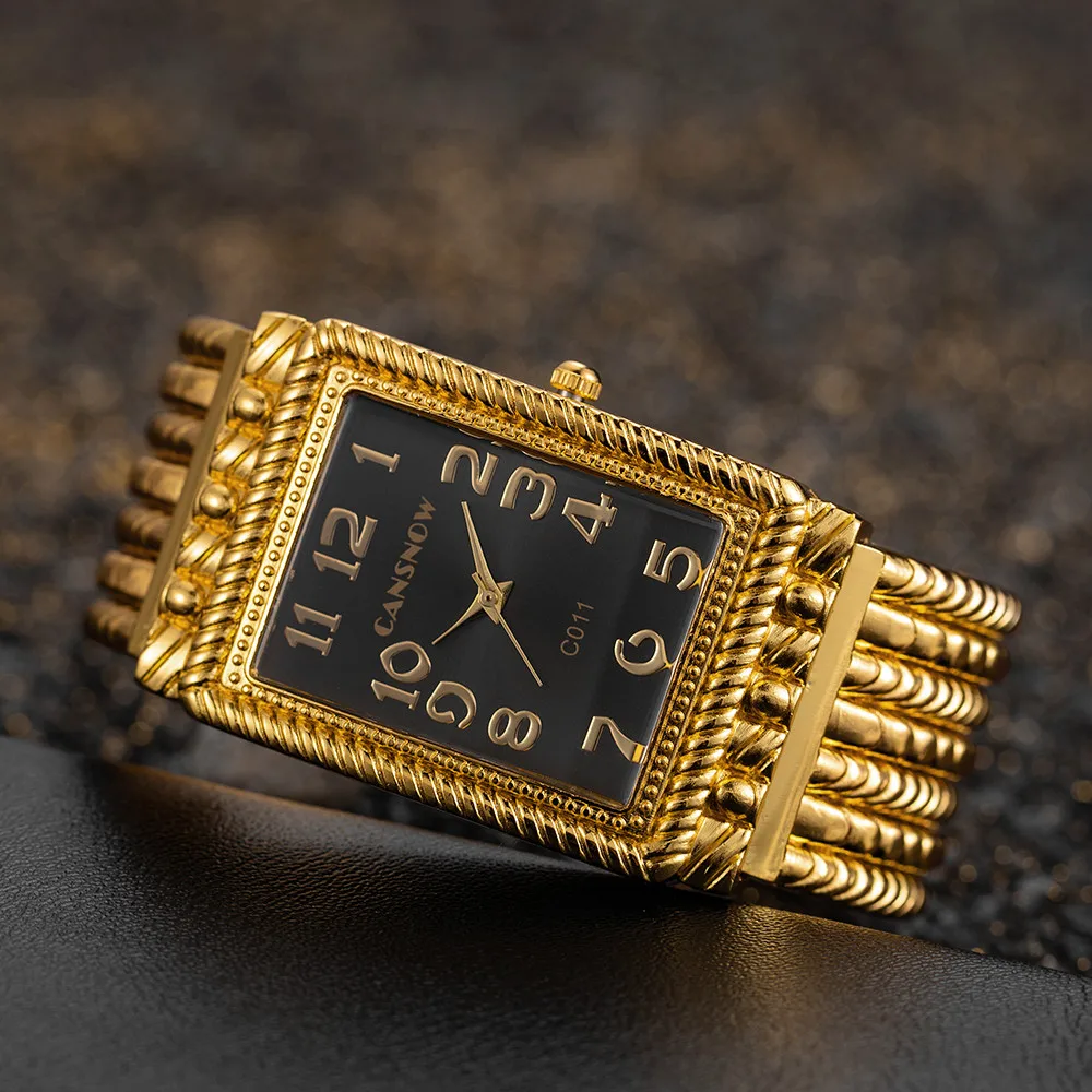 Часы женские кварцевые золотистыечерные с браслетом на запястье