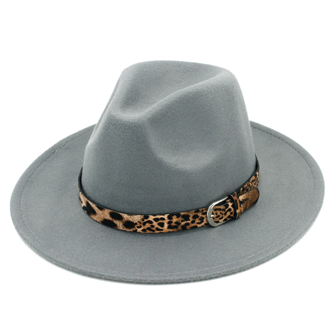 LUCKYLIANJIдетская кожаная с леопардовым принтом однотонная шерстяная шляпа-Панама, шапки-федора (один размер: 54 см, с регулируемой веревкой)