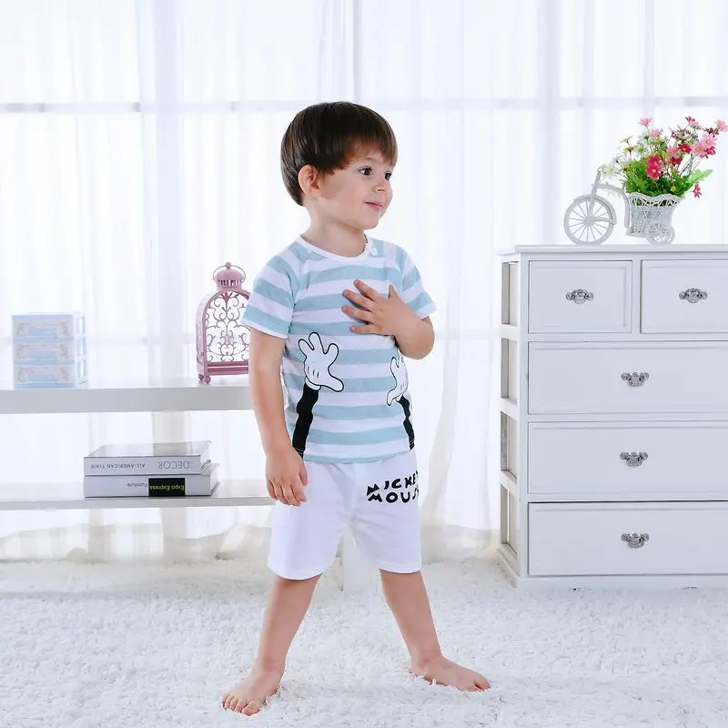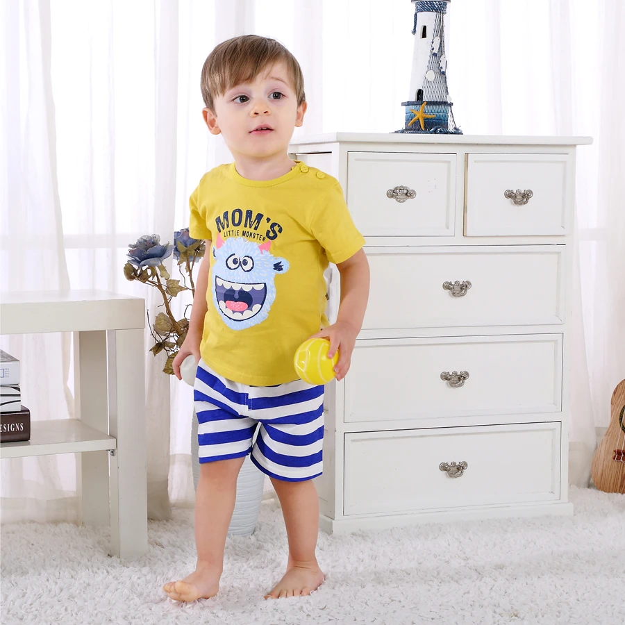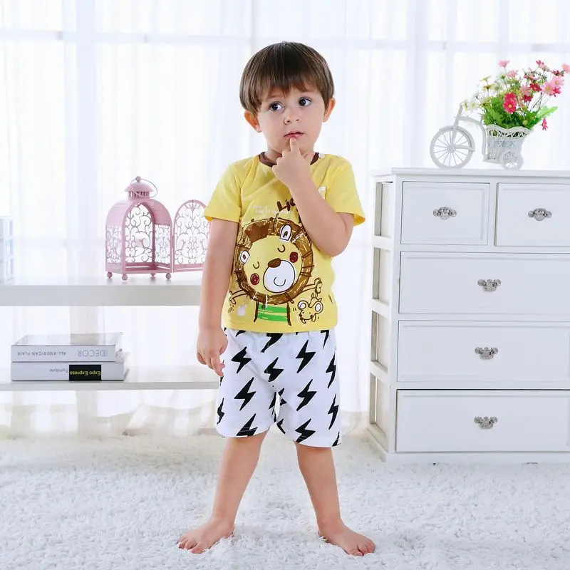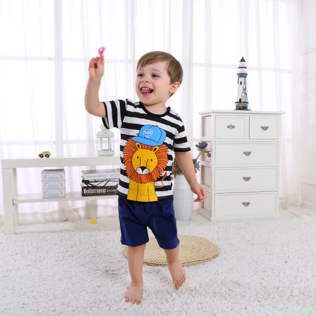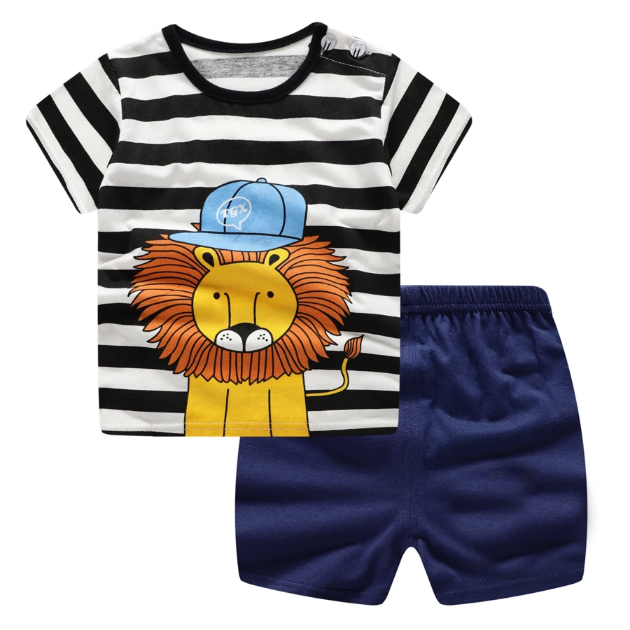 Одежда для маленьких мальчиков с рисунком короля льва хлопковая футболка в полоску + шорты Повседневная одежда для мальчиков из 2 предметов комплект модной летней одежды DS19