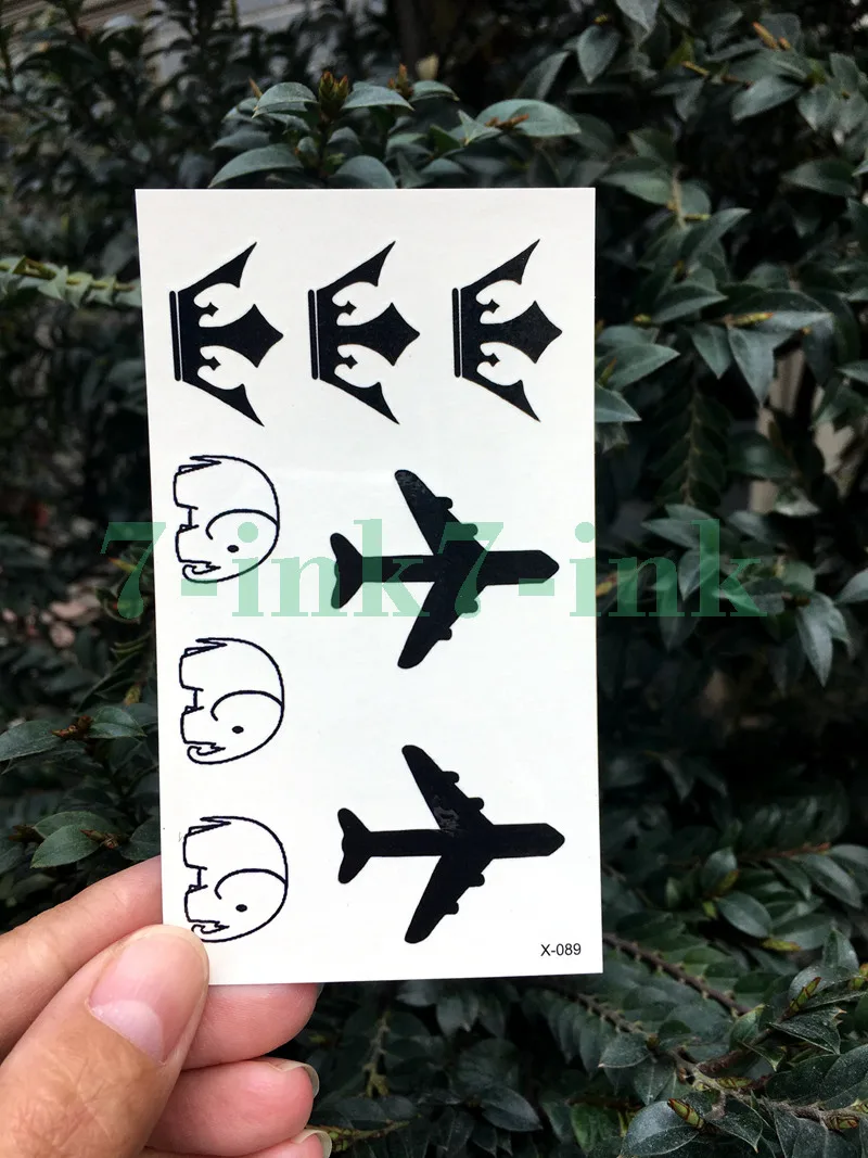 Татуировка переводная Временная водостойкая для мужчин и женщин, тату-наклейка в виде черного самолета, слона, короны, флэш-тату