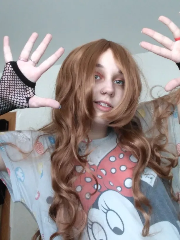 Парик в хорошем состоянии, но он очень блестящий даже после того, как я надел на него смягчитель и детский порошок. Я бы не рекомендовал косплей, но если бы вы просто получили его на Хэллоуин или smt, это rlly хорошо! Tik tok: beth.weeb11