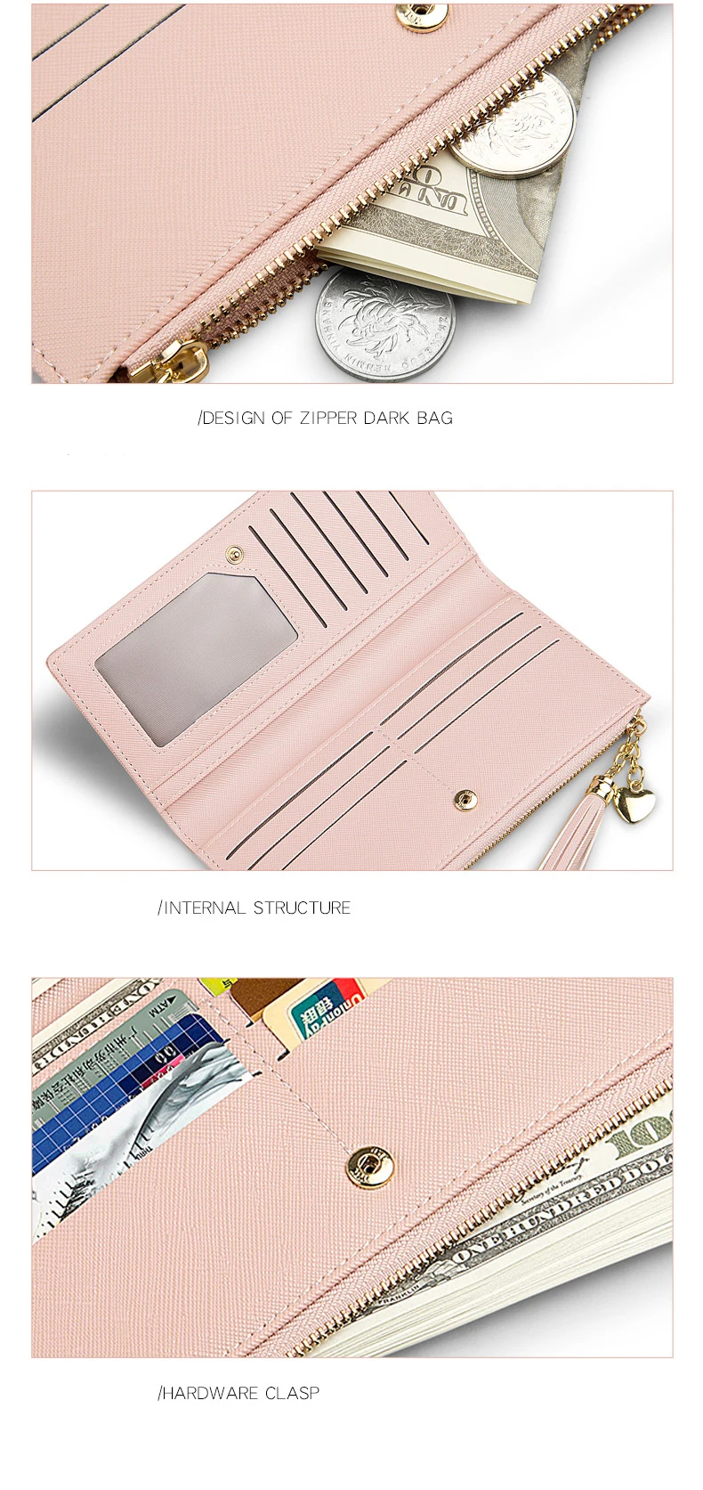 Кошелек женский, длинный, милый, кожаный, на молнии, 2021