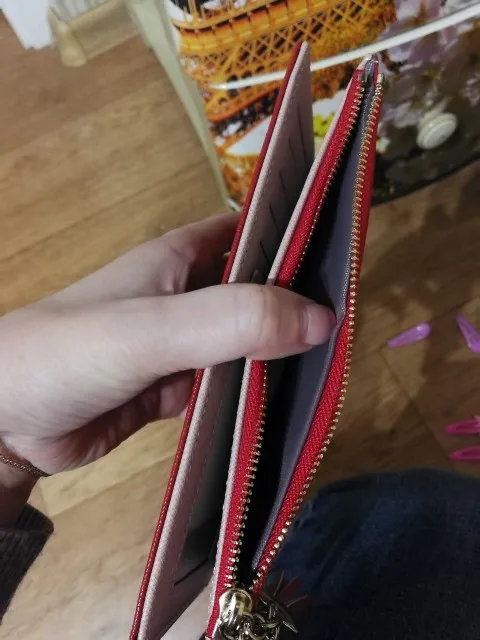 Черт, вообще не ожидала что товар будет таким красивым и качественным. Такая тонкая и изящная. Даже не считая долгую задержку посылки я могу с уверенностью советовать вам всем купить этот кошелек. (Ожидала худшего так как это моя первая онлайн покупка на Али).