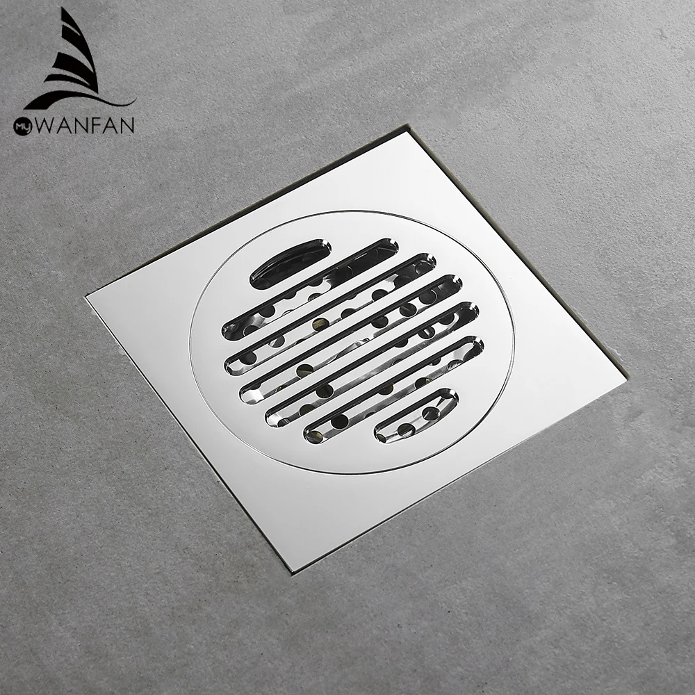 Сливы 10 см квадратная латунная хромированная Ванная комната слив пола линейный балкон дезодорант сливной фильтр крышка мусорная решетка HJ-8117L