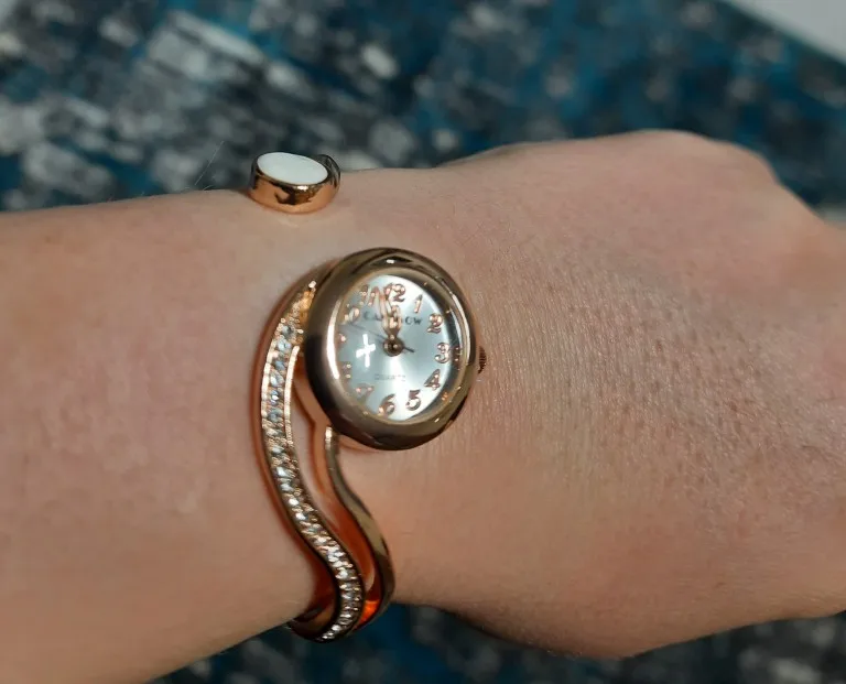 Часы очень, очень понравились. Оригинальныйдизайн. На руке замечательно смотрятся. Рекомендую всем, у кого худенькие руки.