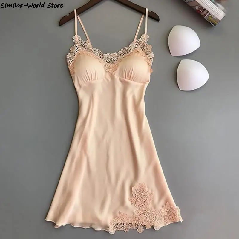 Ночная рубашка женская, шелковая, атласная, без рукавов, с V-образным вырезом
