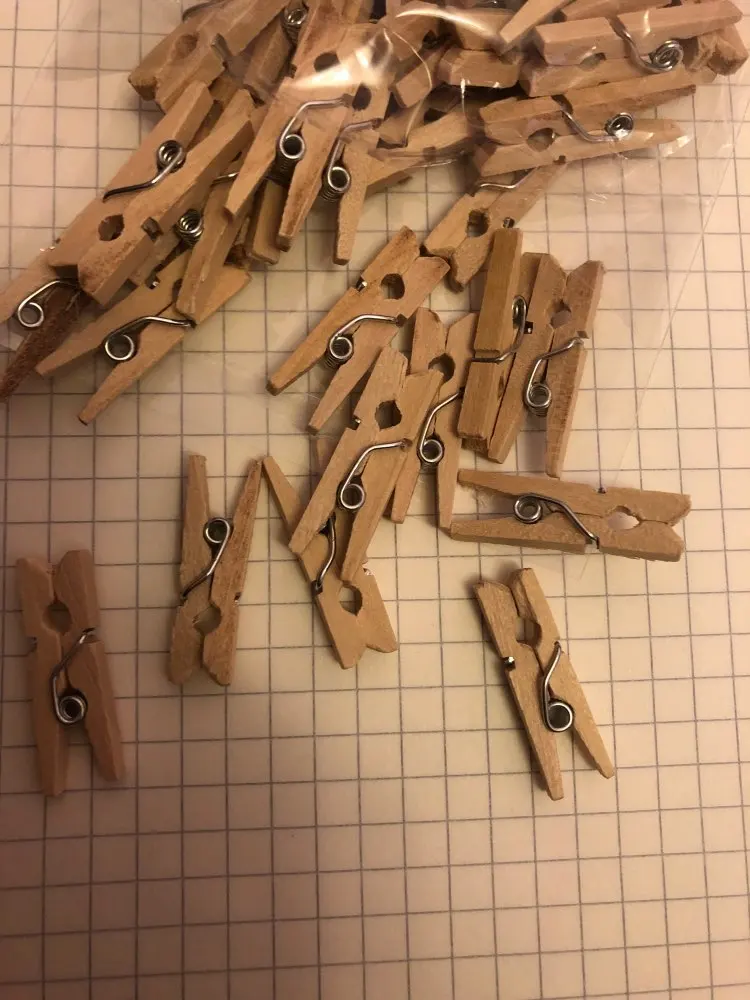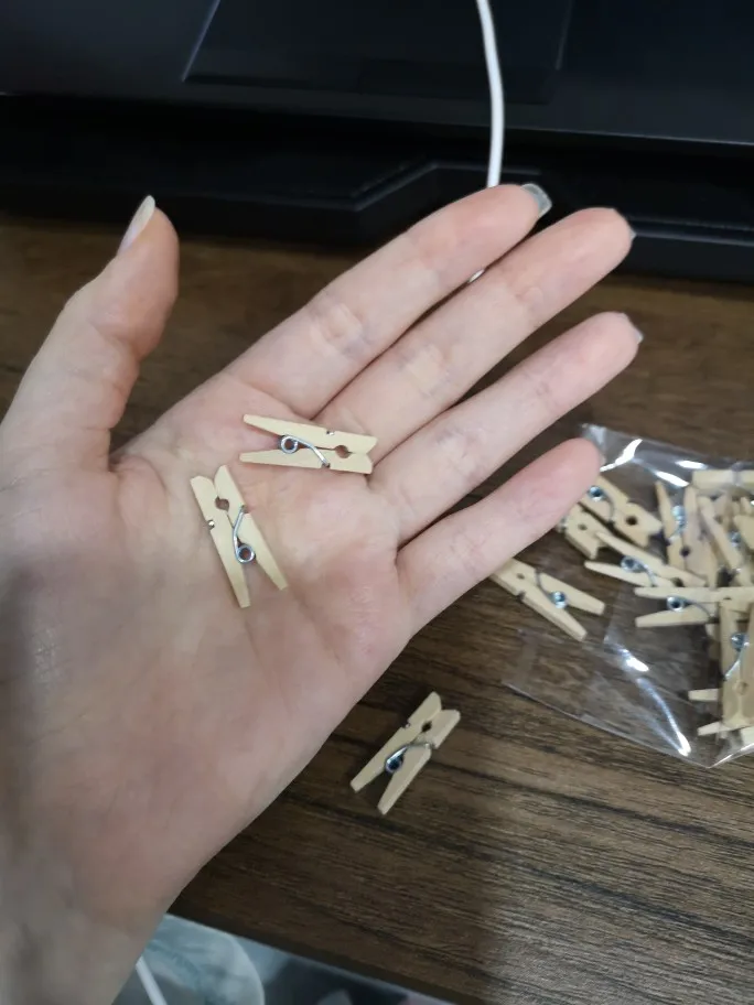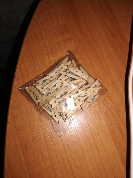 Очень качественные и невозможно милые прищепки. Заказывала, чтобы крепить на них фотографии, но они оказались настолько крепкими, что хоть белье на них суши))) Все в исправном состоянии, миниатюрные и милые. Продавец в подарок положил красную ниточку, Спасибо)