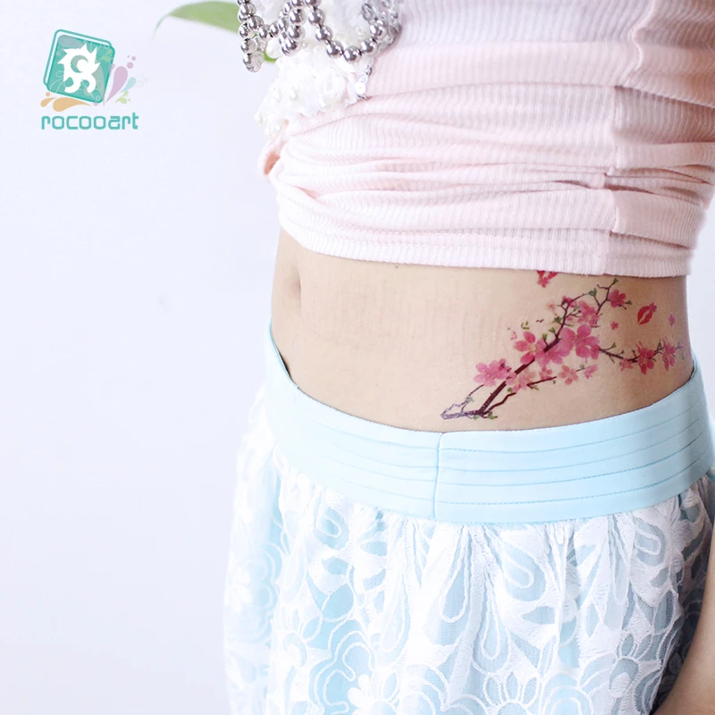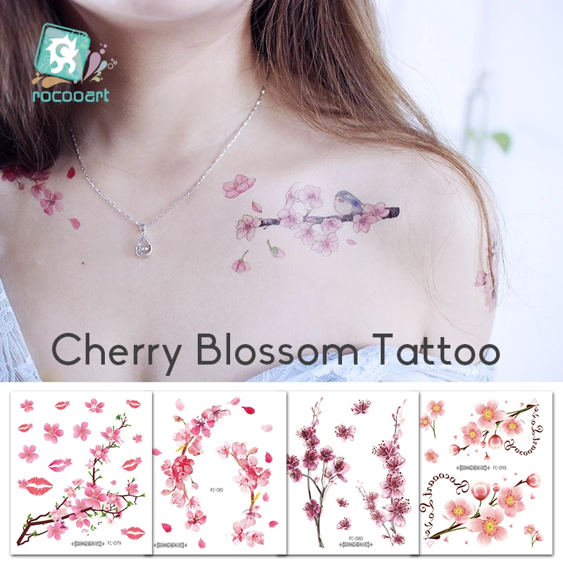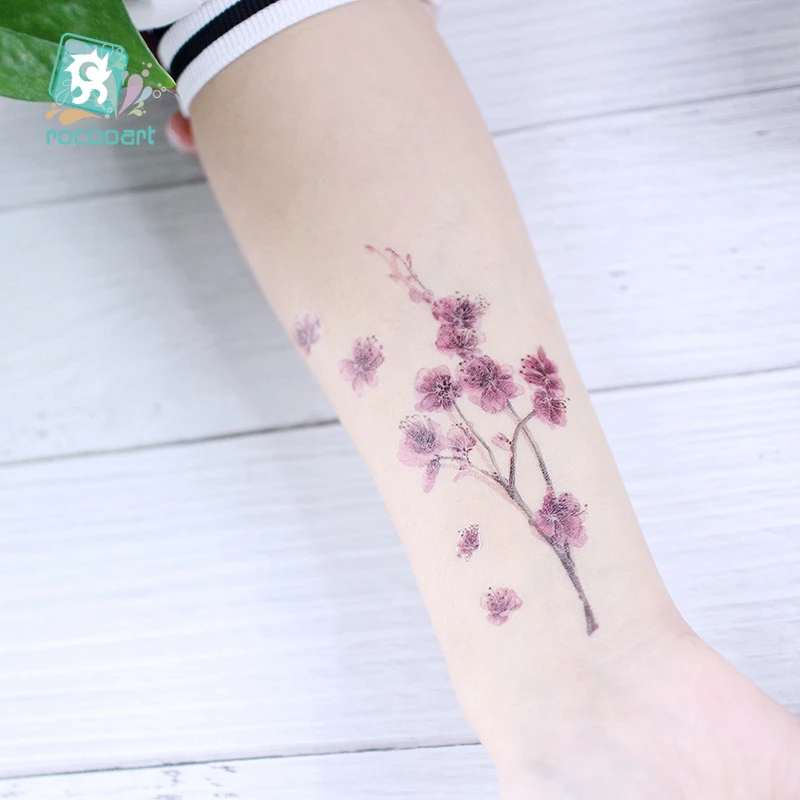 Тату-наклейки Rocooart Sakura для женщин, искусственные татуировки с цветами, боди-арт, водостойкое, татуировка на руку вишневый цвет