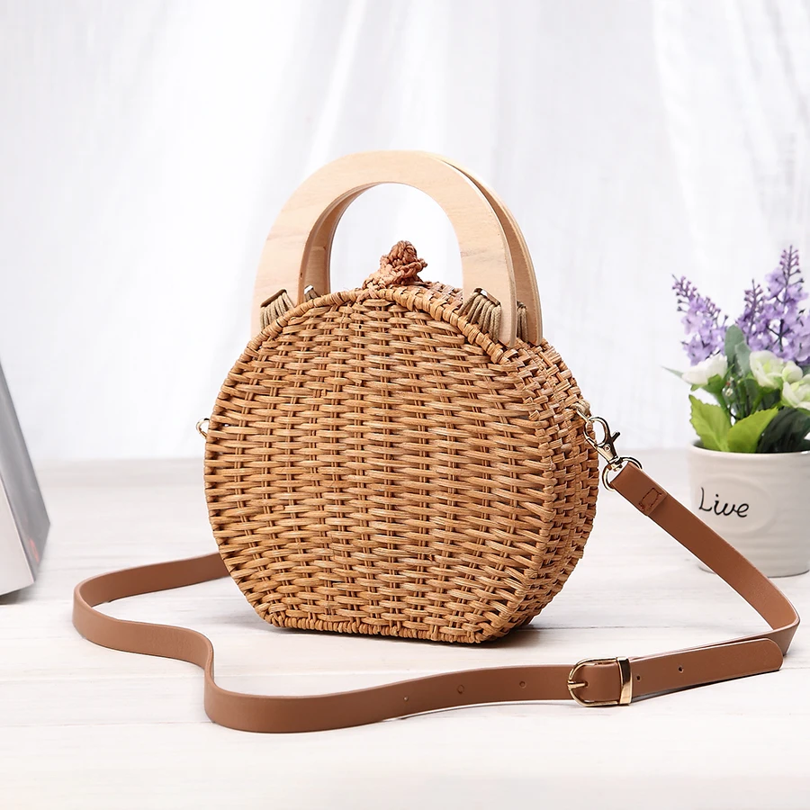 Соломенная Сумочка для женщин, плетеный верх ручной работы, круговые вязаные сумки, дорожные соломенные сумки-тоуты для женщин, сумка через плечо, пляжная сумка с ручкой