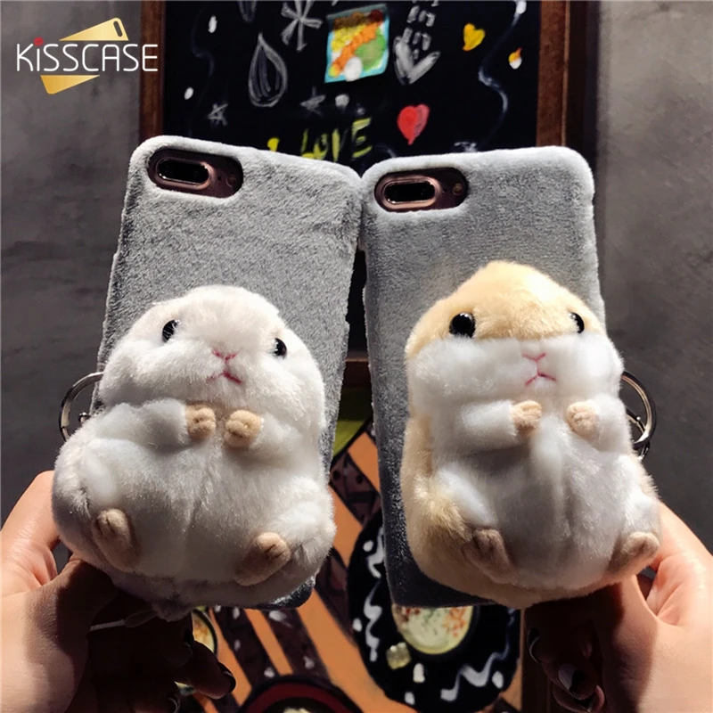 KISSCASE 3D плюшевый меховой зимний теплый Забавный Меховой чехол для телефона для iPhone X 6 6S 7 8 Plus Милая шапка в виде животного чехлы Чехлы Capinha Fundas