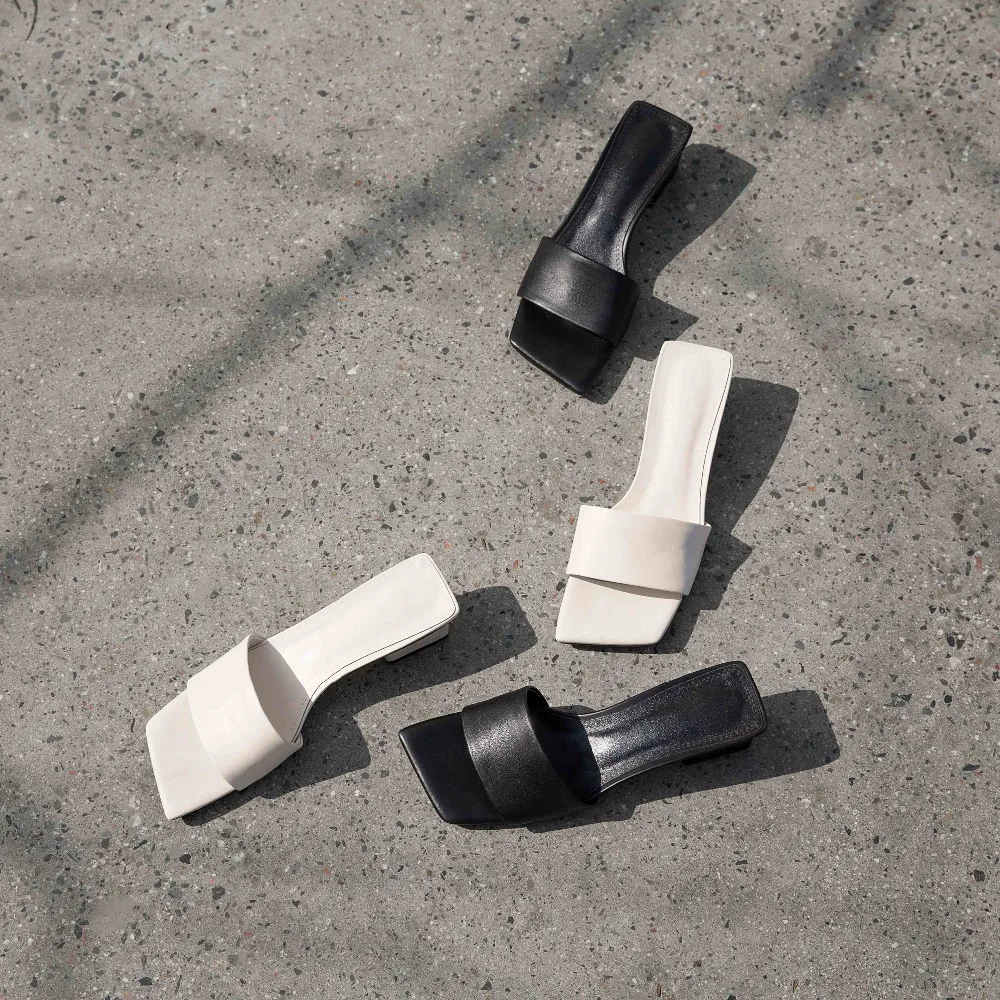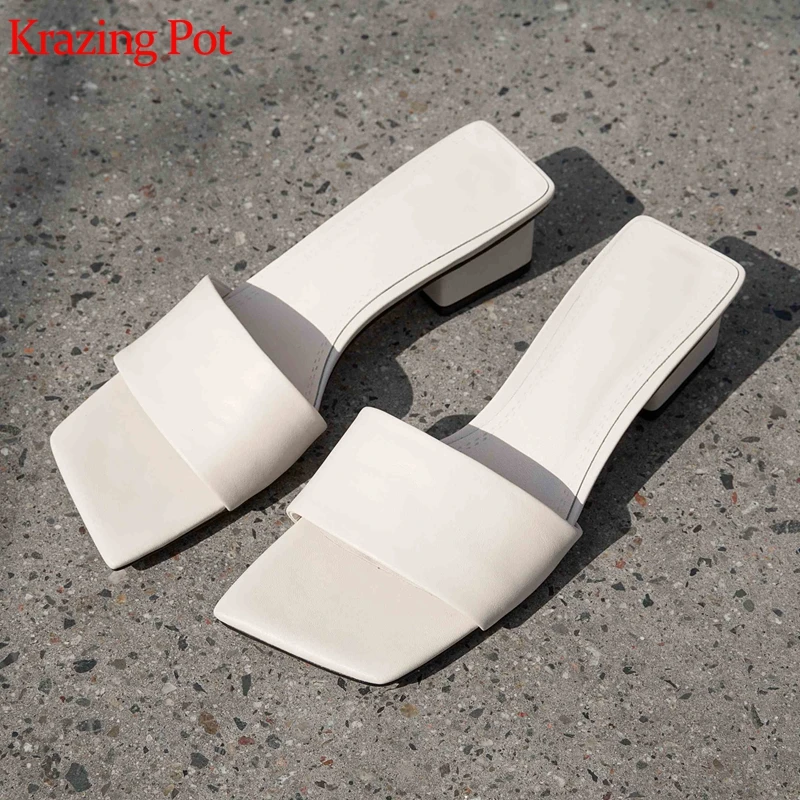 Мюли Krazing Pot 2021 натуральная кожа, квадратный носок, средний каблук, открытый носок, высокое качество, британский дизайн, однотонные летние сандалии