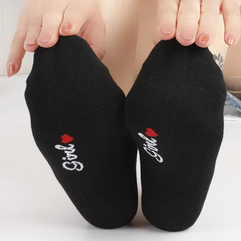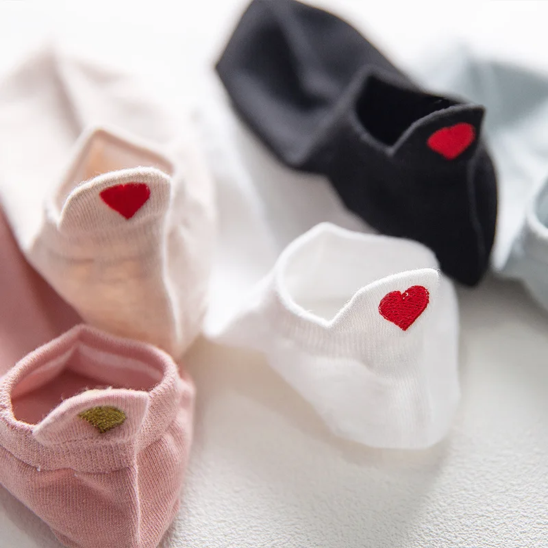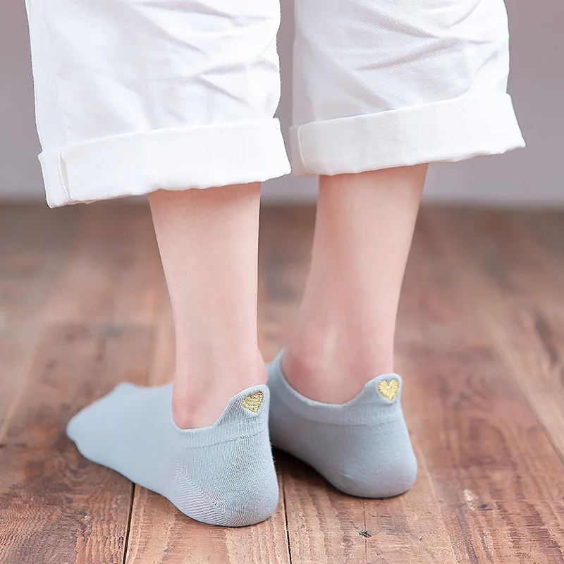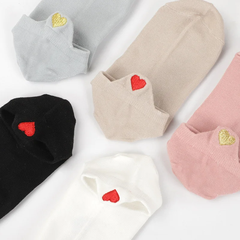 Милые носки с принтом в форме сердца, модные забавные носочки на каблуке с блестящим золотым шелком и красным сердцем, Прямая поставка