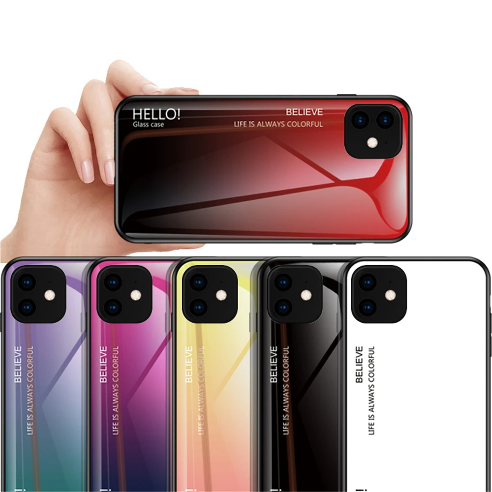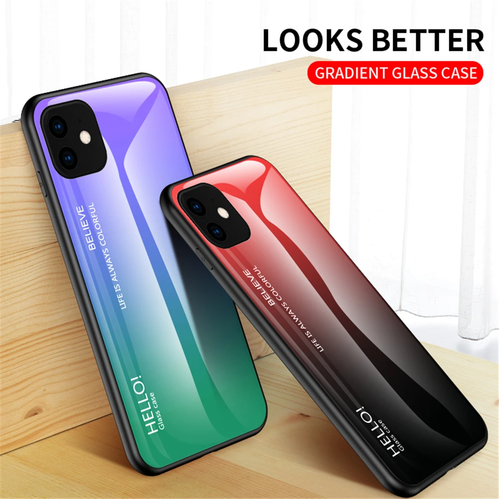 Градиентный чехол для телефона Aurora для iPhone 11 Pro Xs Max iPhone XR X 6 6S 7 8 Plus чехол из закаленного стекла, полная защитная задняя крышка