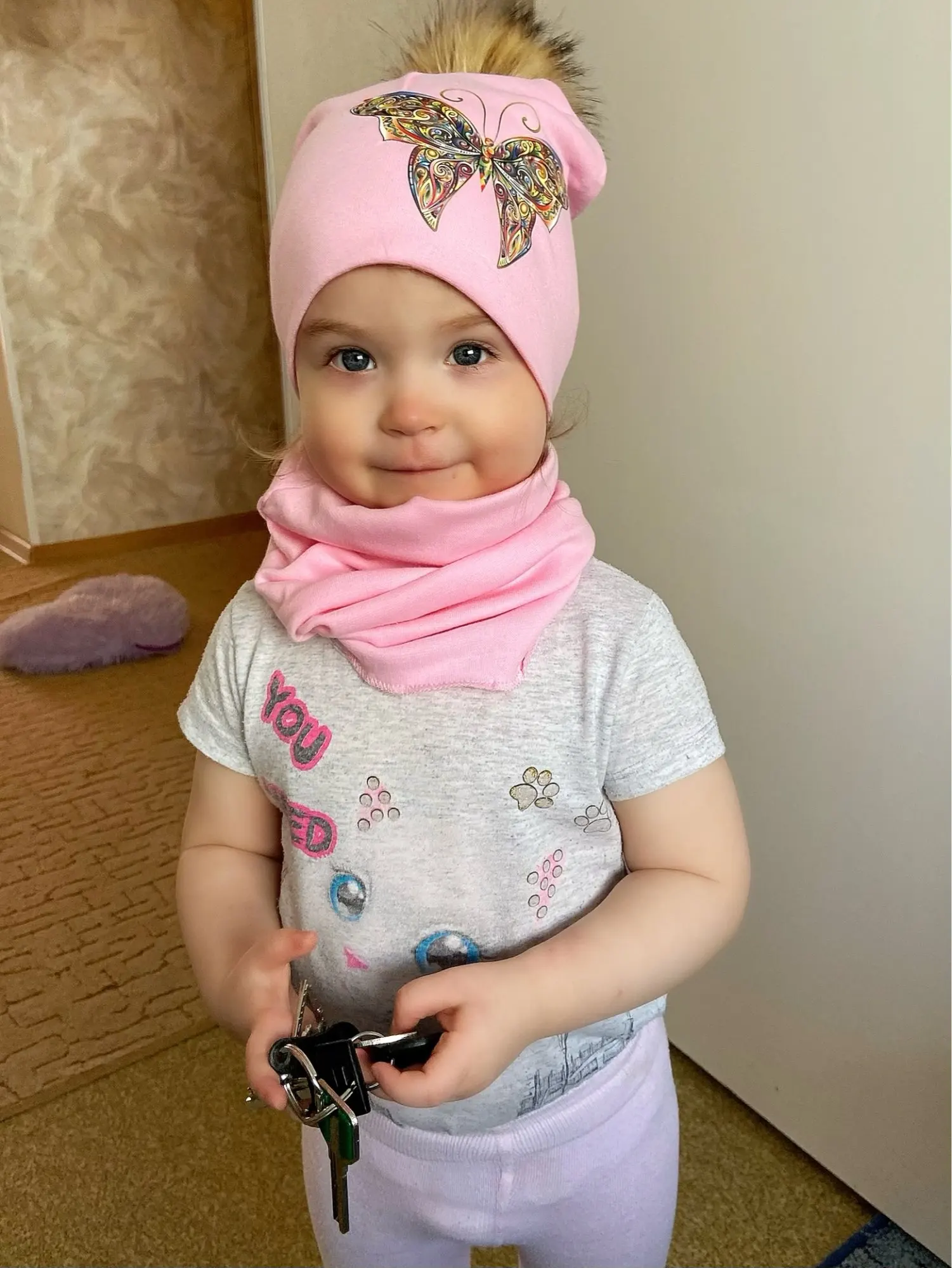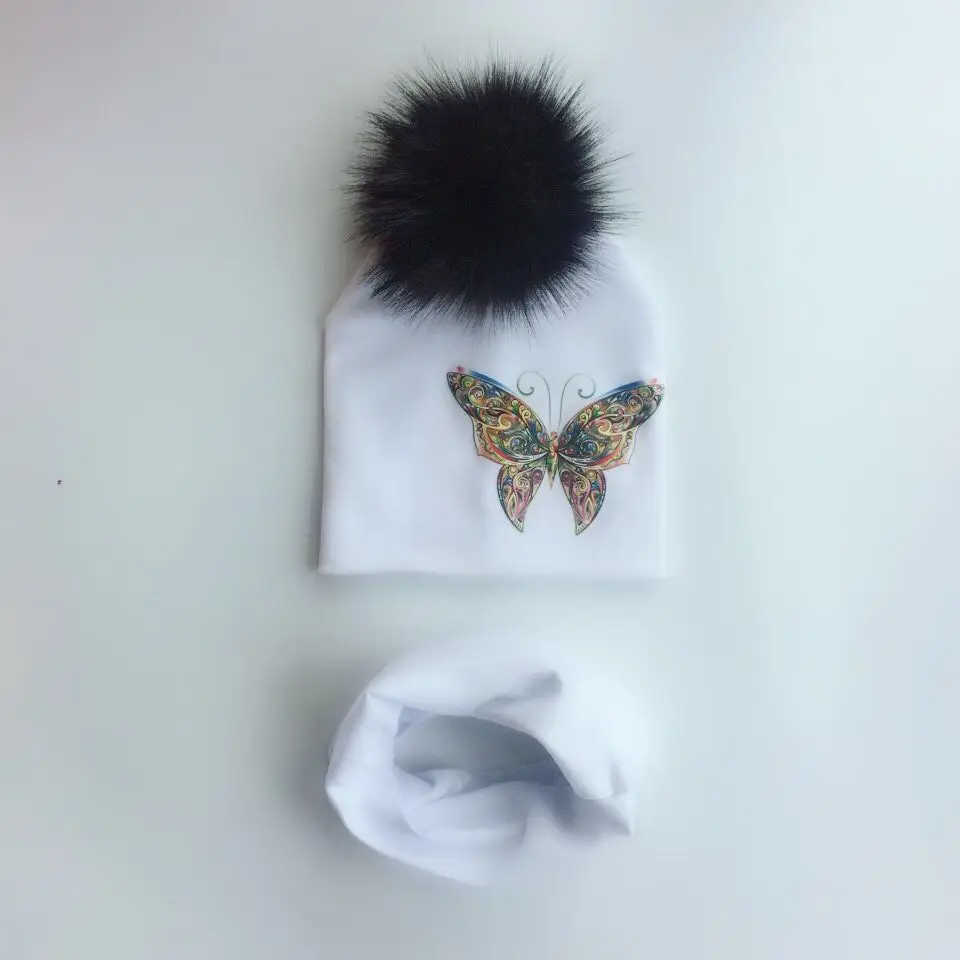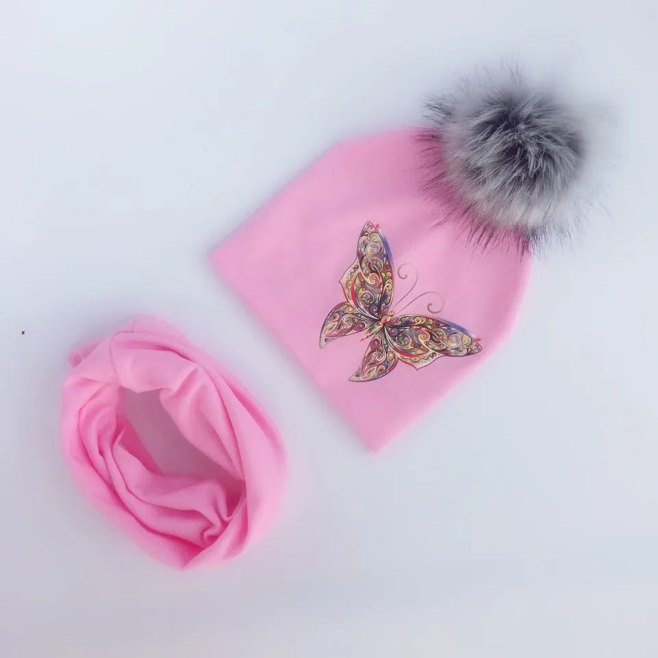Шапка детская хлопковая вязаная, с принтом бабочки, Единорога