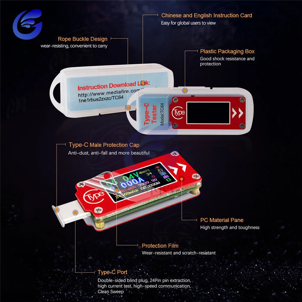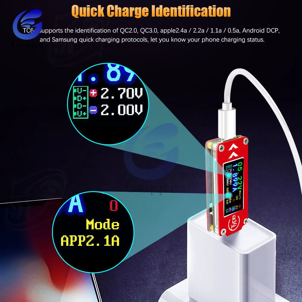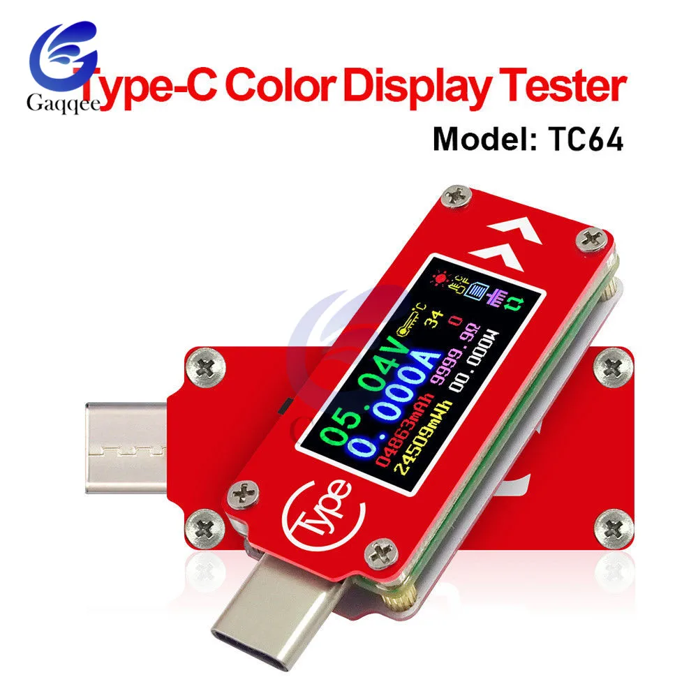 Мультиметр TC64 QC2.0 QC3.0 Type-C, USB-тестер с цветным ЖК-дисплеем, для внешних аккумуляторов
