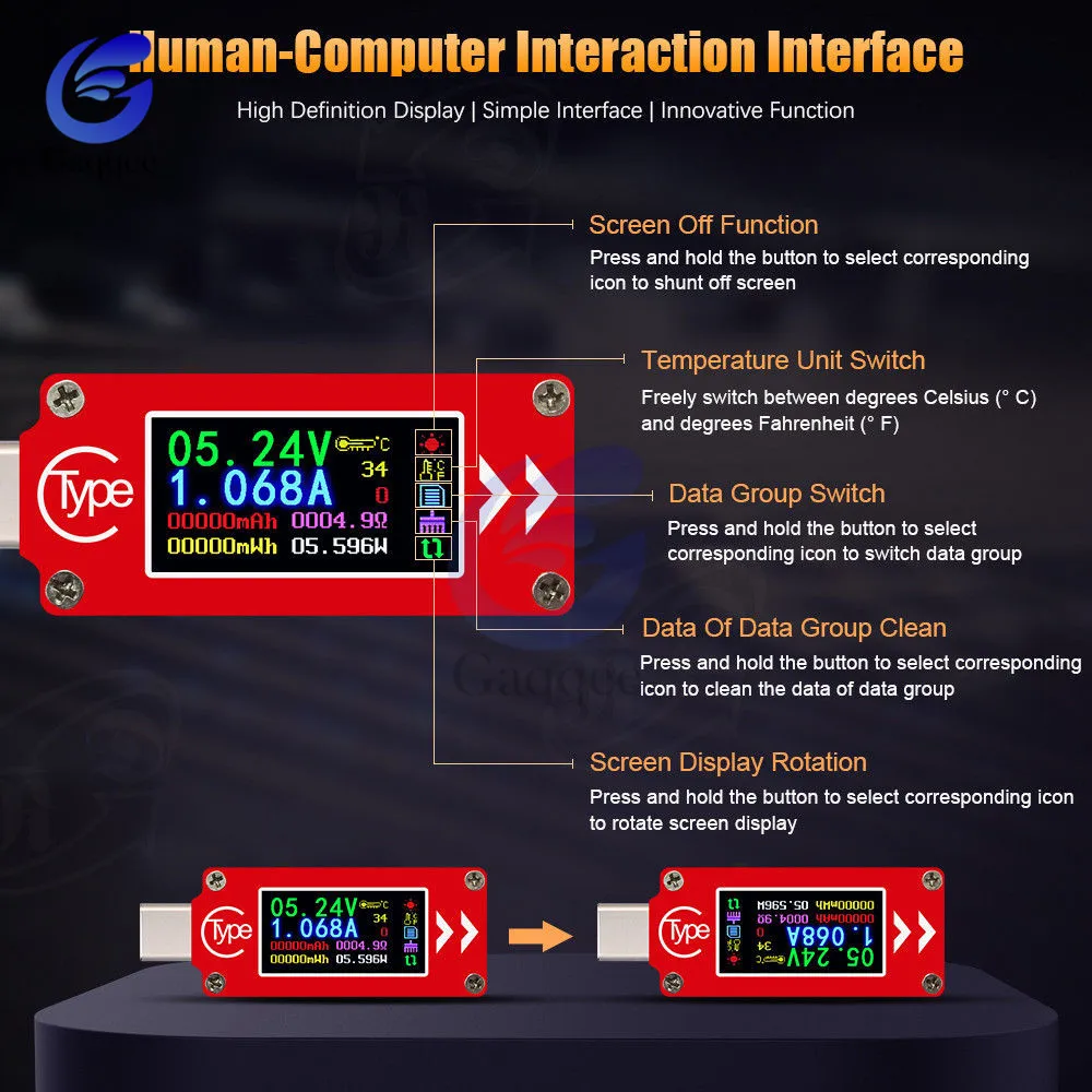 1 *Тип-c USB тестер постоянного тока цифровой вольтметр USB-C напряжение измеритель тока Амперметр детектор Тип C зарядное устройство индикатор USB