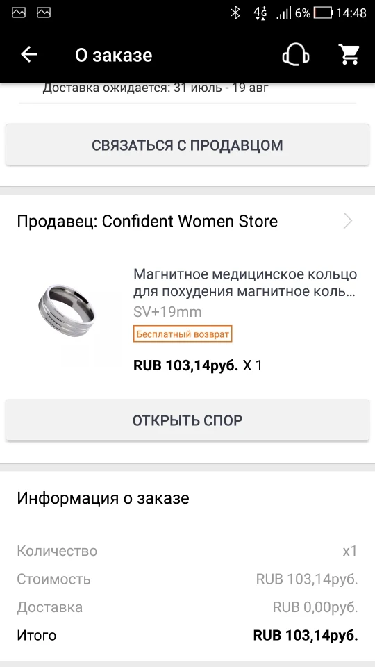 Никогда не получил кольцо. Продавец ничего не возвращает. Афера! Не Заказывайте у этого продавца!