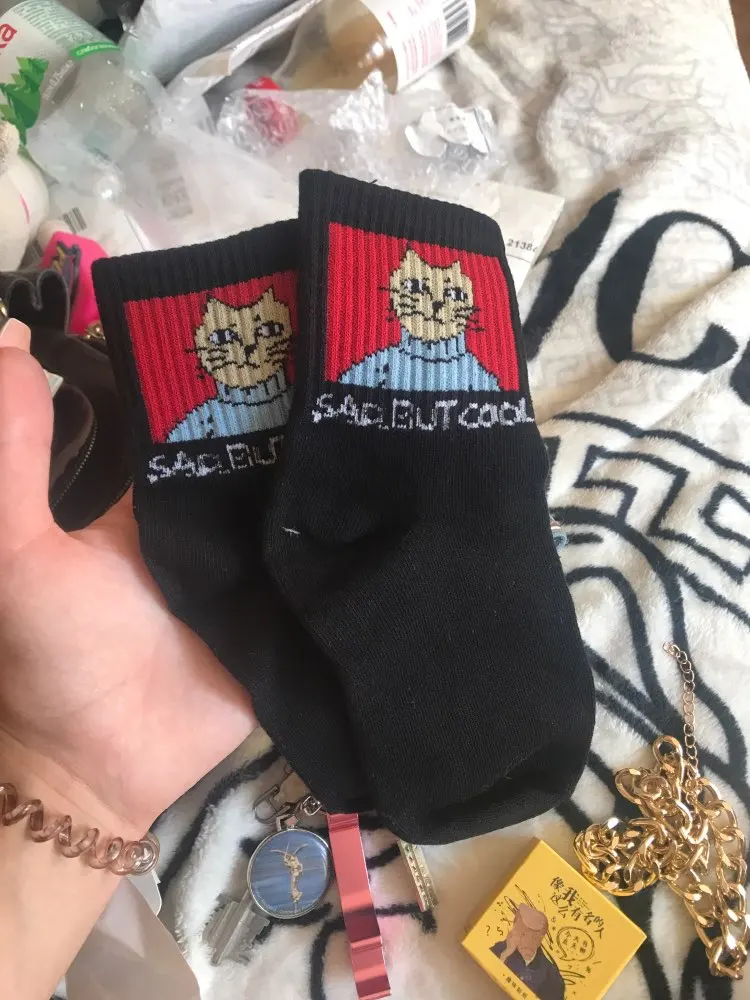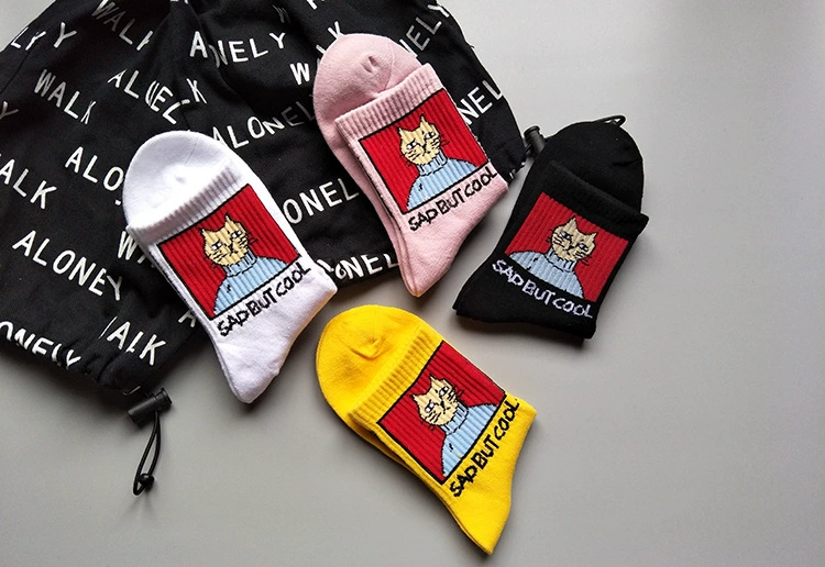 Женские носки, мультяшный Кот, унисекс, спортивные носки в стиле Харадзюку, высокое качество, модный принт с животными, скейтборд, носки, подарок на Рождество