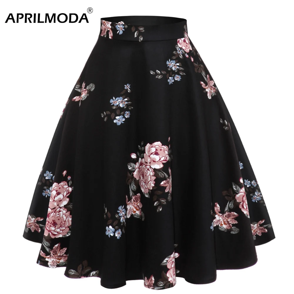Трапециевидная юбка миди с цветочным рисунком в стиле ретро, высокая талия, хлопковые винтажные женские школьные юбки, женские элегантные плиссированные юбки с цветочным принтом, 50S