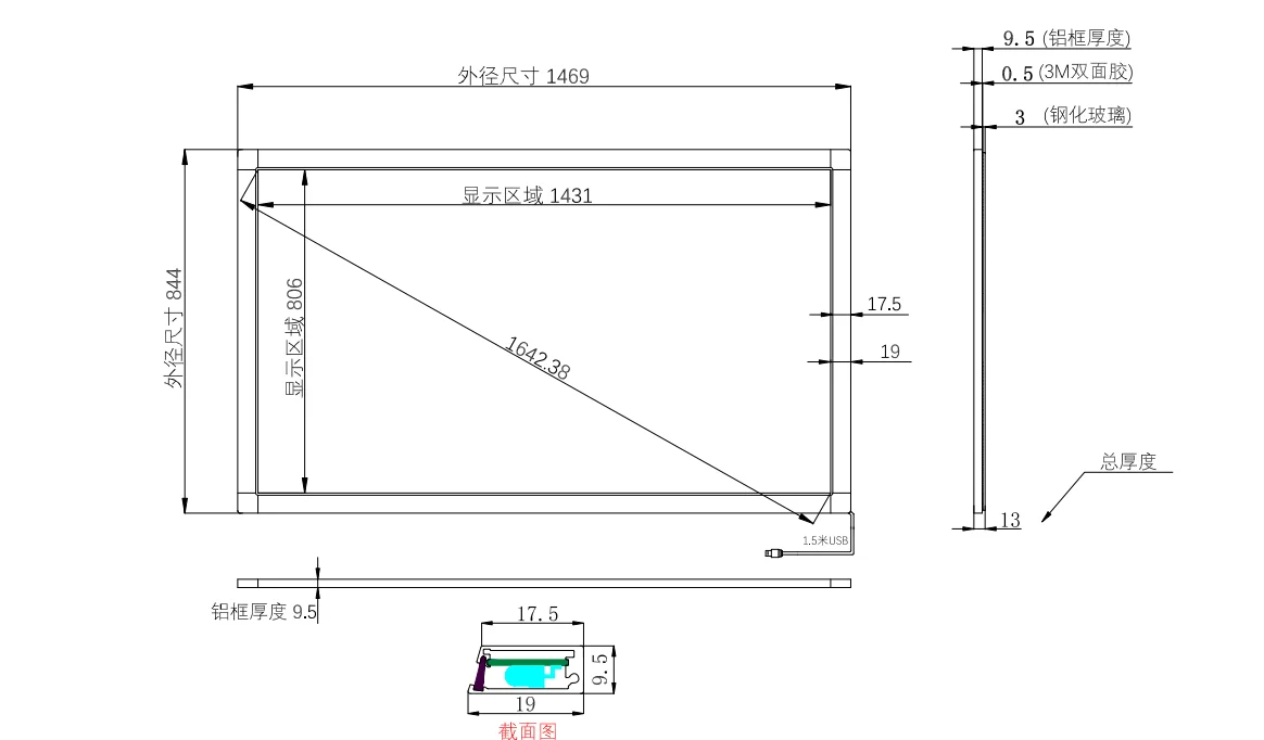 65 дюймов 10 точек ИК/инфракрасный мульти сенсорный экран чертеж продукта: