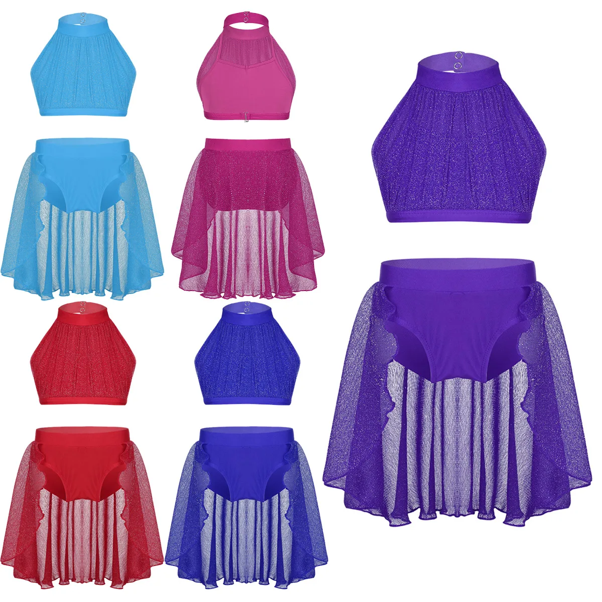 ChicTryОдежда для танцев, пачка детский укороченный топ с открытой спиной для балета и шорты, комплект с юбкой, современный детский комплект для сцены костюмы для лирических танцев