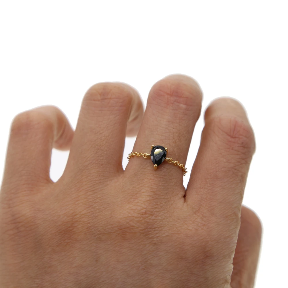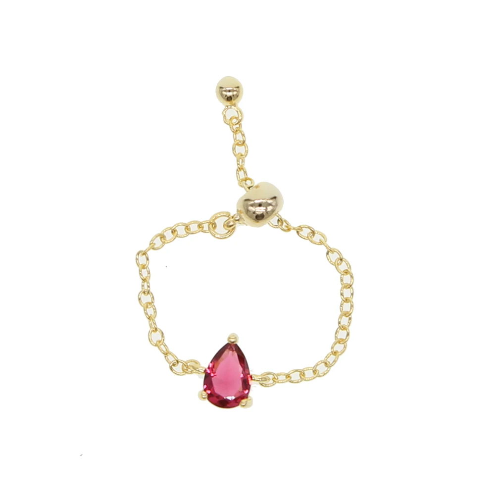 Простое кольцо-цепочка с фианитом красного, черного, белого цвета