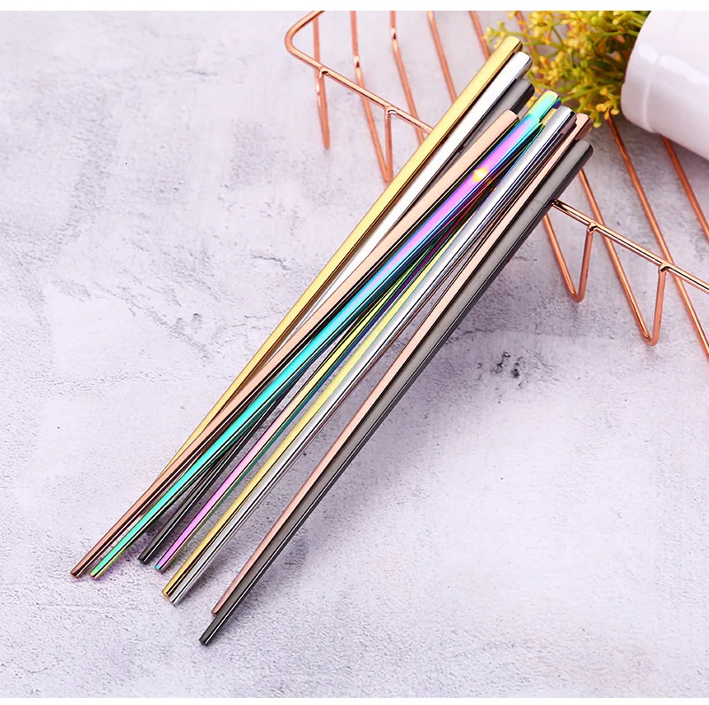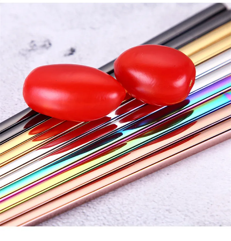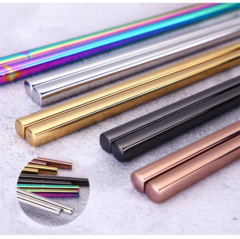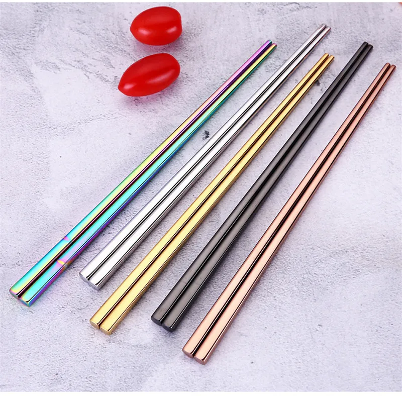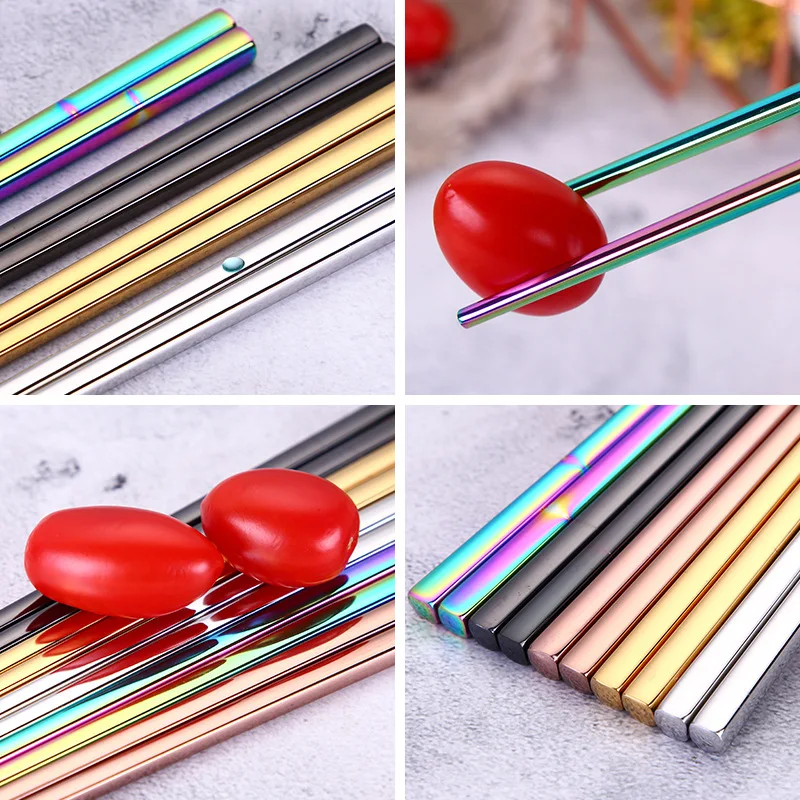 Черные палочки для еды 1 пара 23,5 см, квадратные палочки из нержавеющей стали 304 5 цветов, корейские разноцветные палочки для суши