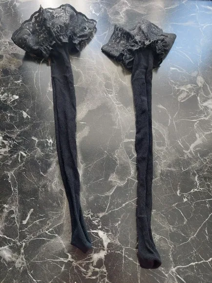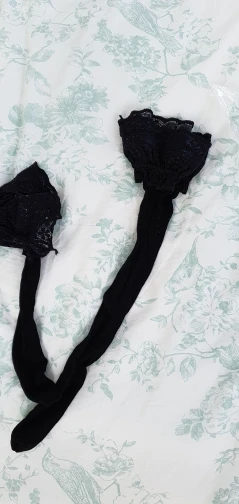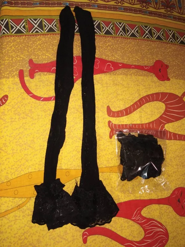 Чулки шикарные, смотрятся очень красиво! муж в восторге! правда из-за липких краёв ноги на этих местах потеют (кожа не дышит) и от этого немного дискомфортно... но они действительно не сползают! Юбку с держателями не надеть, так как слишком плотные из-за силиконовых вставок.