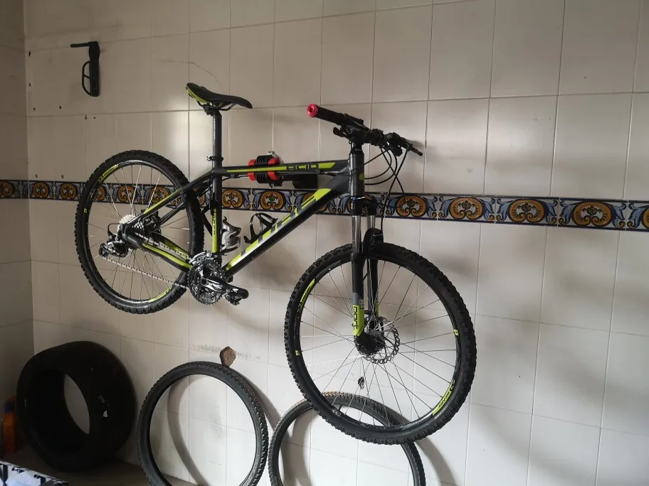 Работает только для того, чтобы повесить велосипед на стену, а не для работы на велосипеде... Он имеет много игр во всех движущихся частях.