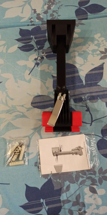 Люди, отличная струбцина! Посылка пришла в ЯНАО, г.Муравленко, очень быстро. Судя по адресу на упаковке, пересылка в Москве. Стальной коробчатый профиль, хоть тонкий(25 кг-выдержал легко(статика)), соединяет пластиковое основание и пластиковые"челюсти". Пластик чёрный-жёсткий, красные накладки съёмные и мягче намного. Рычаг аллюминиевый, болты/гайки-металл. Система складная(можно, в зависимости от крепления) сложить вертикали вверх, либо вниз, когда не используется. В рабочем положении крепится под 90⁰ к вертикали, вводом стального профиля, внутрь, в подошву основания ~на4см и зацепом за осевой болт прорезями в профиле. Получается "дёшево и сердито". Механизм открытия "челюстей" регулируется по максимуму-барашком, а кулачковый механизм рычага, позволяет легко и быстро оперировать открытием/закрытием. В комплекте также мануал и шурупы с дюбелями. Продавец, надёжен-РЕКОМЕНДУЮ всем! Очень нужный инструмент, после шестигранных ключей. При умении легко пристроить к стойке для мобильности.