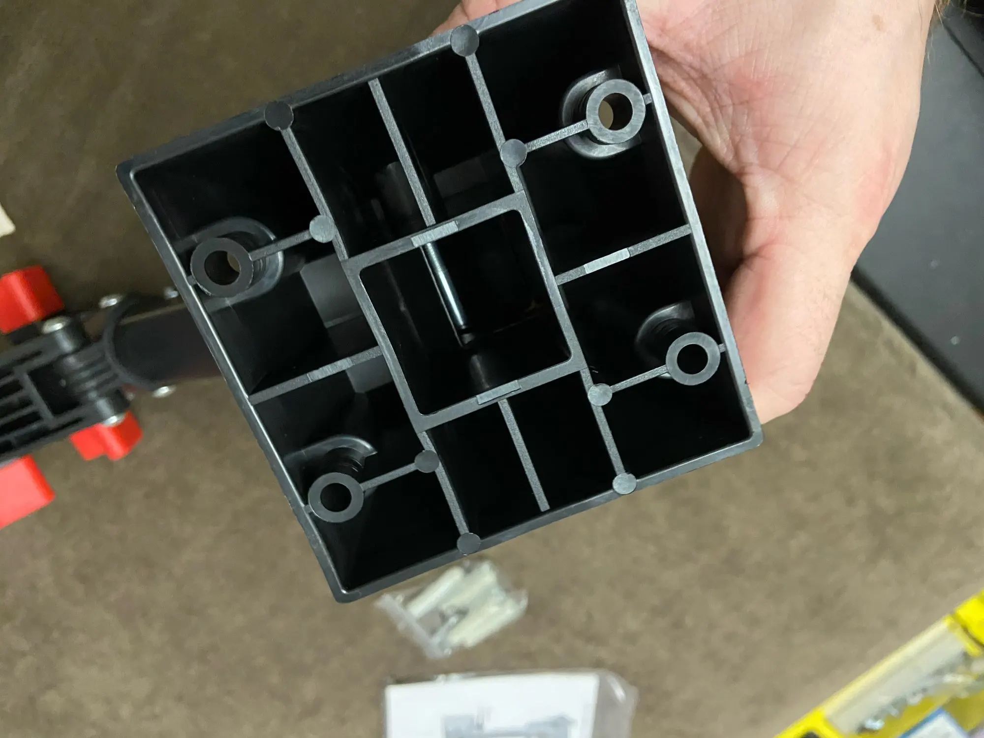 Пришло быстро. Я просверлил еще одно отверстие на 90 ° в опоре, это позволяет работать двумя разными способами. Легко сделать стопу или прикрепить подставку к стене мастерской.