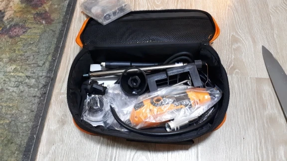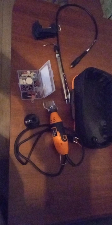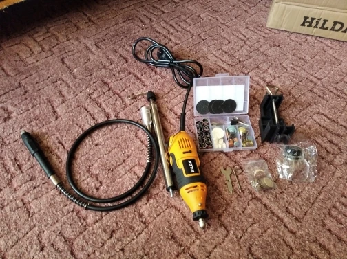 инструмент хороший. обороты регулируются плавно. пластмасса не пахнет. комплектация как на фото. гибкий вал желательно смазать пластичной смазкой(литол, циатим) Можно покупать.