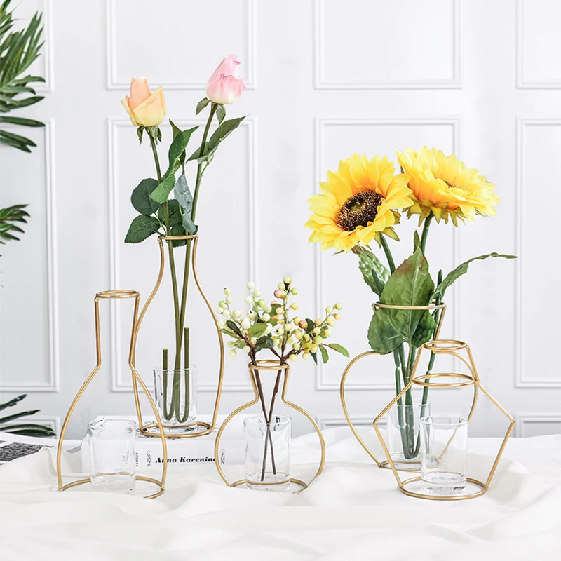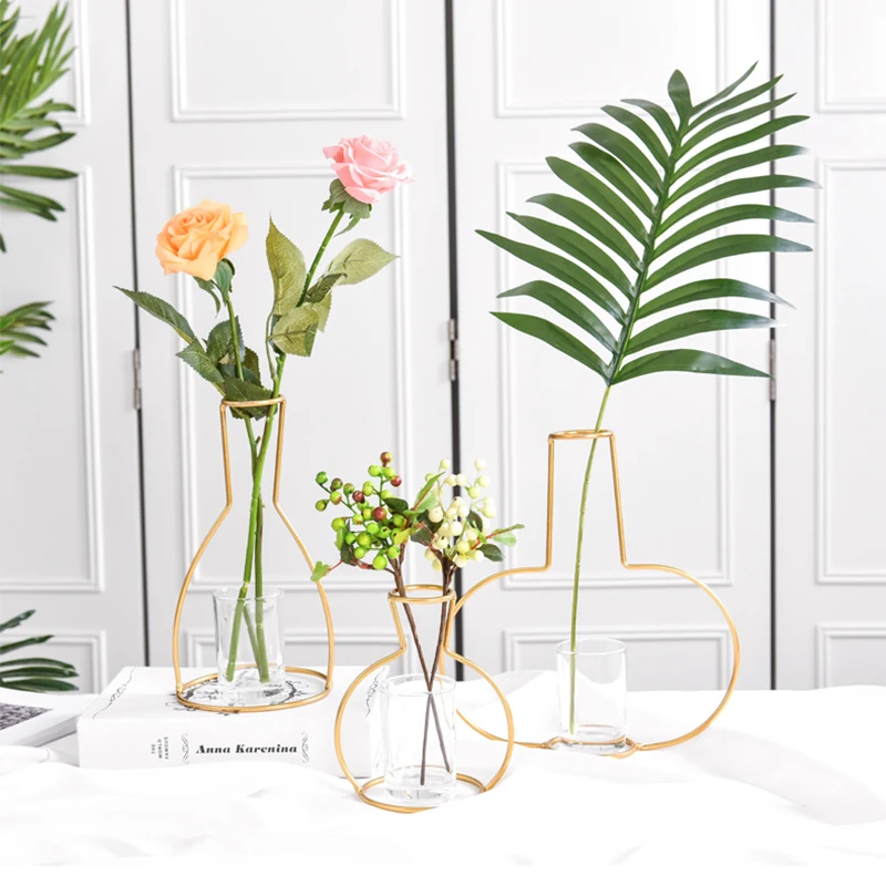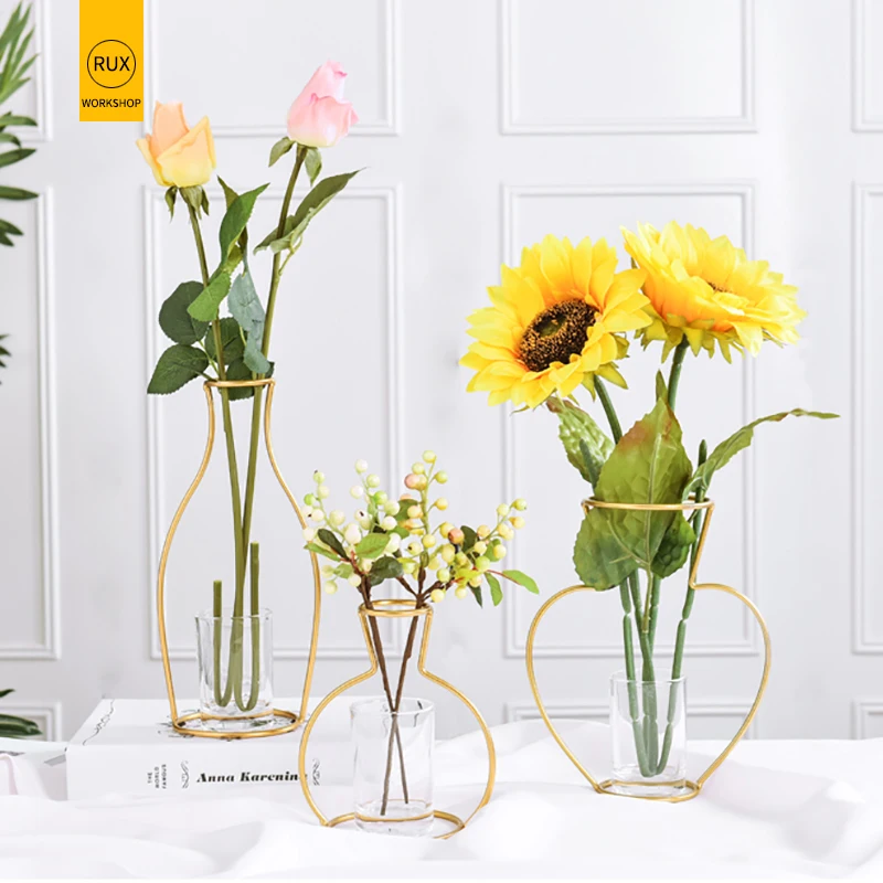 RUX мастерской Nordic Стиль ваза для украшения интерьера золотистый железный провод Искусства Вазы сушенный цветочный цветок украшения дома вечерние украшения