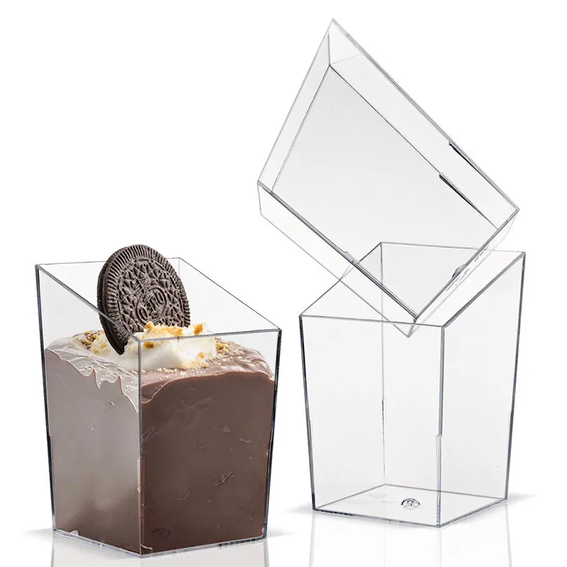Бесплатная доставка, товары вечерние Ринок и свадеб, одноразовая пластиковая посуда 70*55 мм60 мл, прозрачная мини-чашка с десертом и квадратными вырезами, 50 шт.упаковка